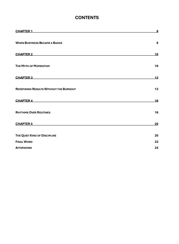 Get things done without erasing yourself. Productivity Without Pressure shows you how to work with clarity, rhythm, and calm discipline—so results come without the burnout.
