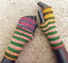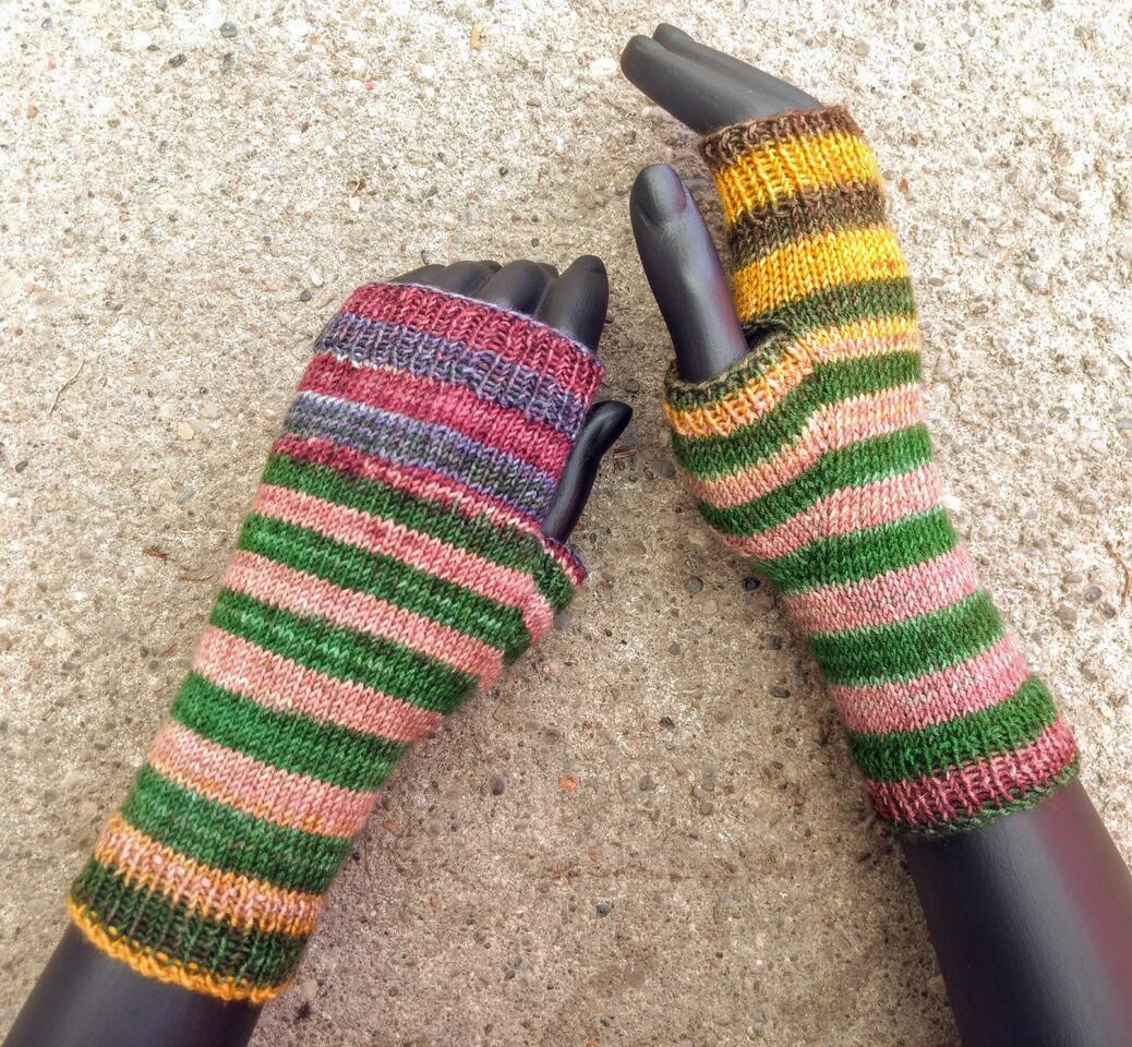 Handwarmers: Circumference at palm 18 cm / 7 in; Total length 20 cm / 8 in; Length before thumb gusset 7.5 cm / 3 in