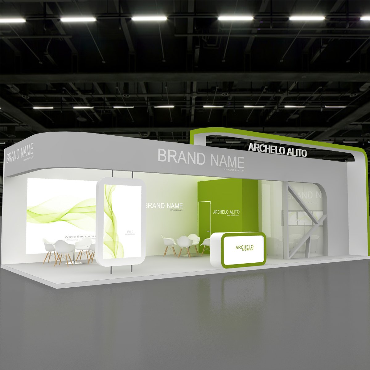 This professional 3D booth model is designed for exhibitions, trade shows, expos, fairs, and event displays.