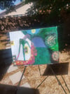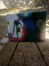 Step into a world of enchantment with this ethereal nature painting, capturing the serene beauty of twilight. This abstract piece features a harmonious blend of vibrant greens, blues, pinks, yellows, and whites, evoking the tranquility of nature at dusk. The rectangular shapes suggest urban elements, creating a captivating fusion of natural and man-made beauty.