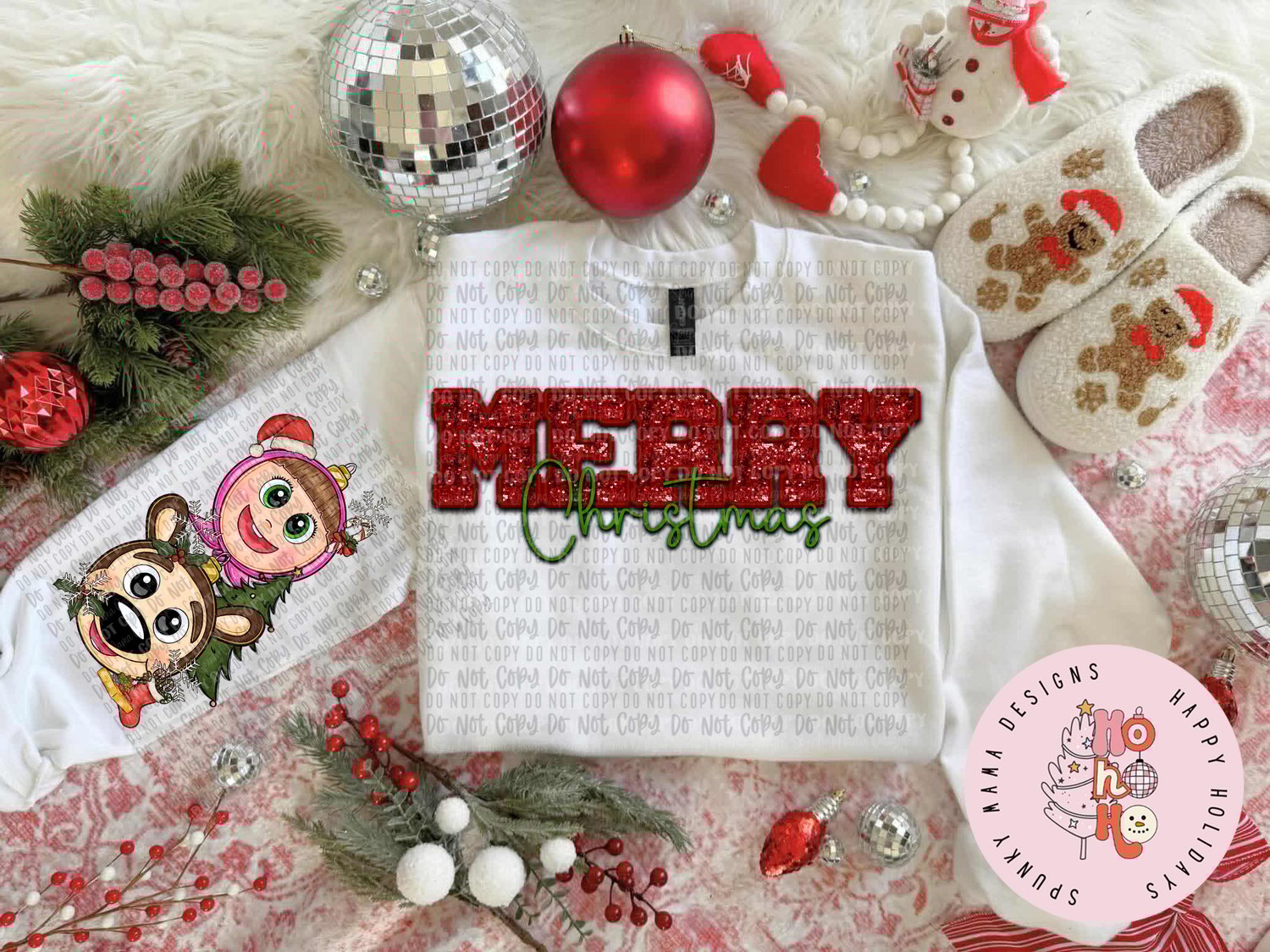 Masha And The Bear Merry Christmas Digital PNG Design With Sleeve