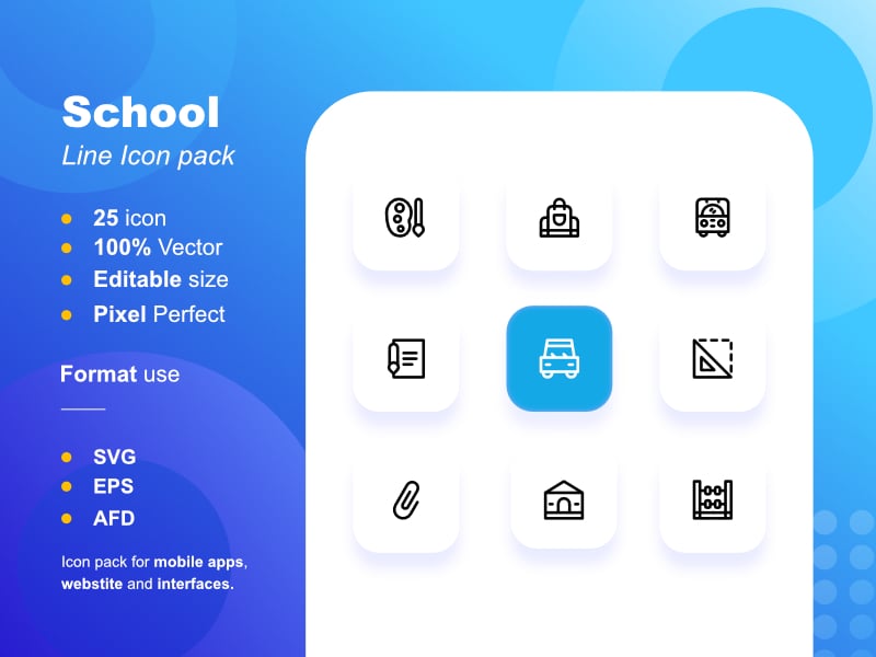 School supplies line icon pack comprises 25 stylish icons.