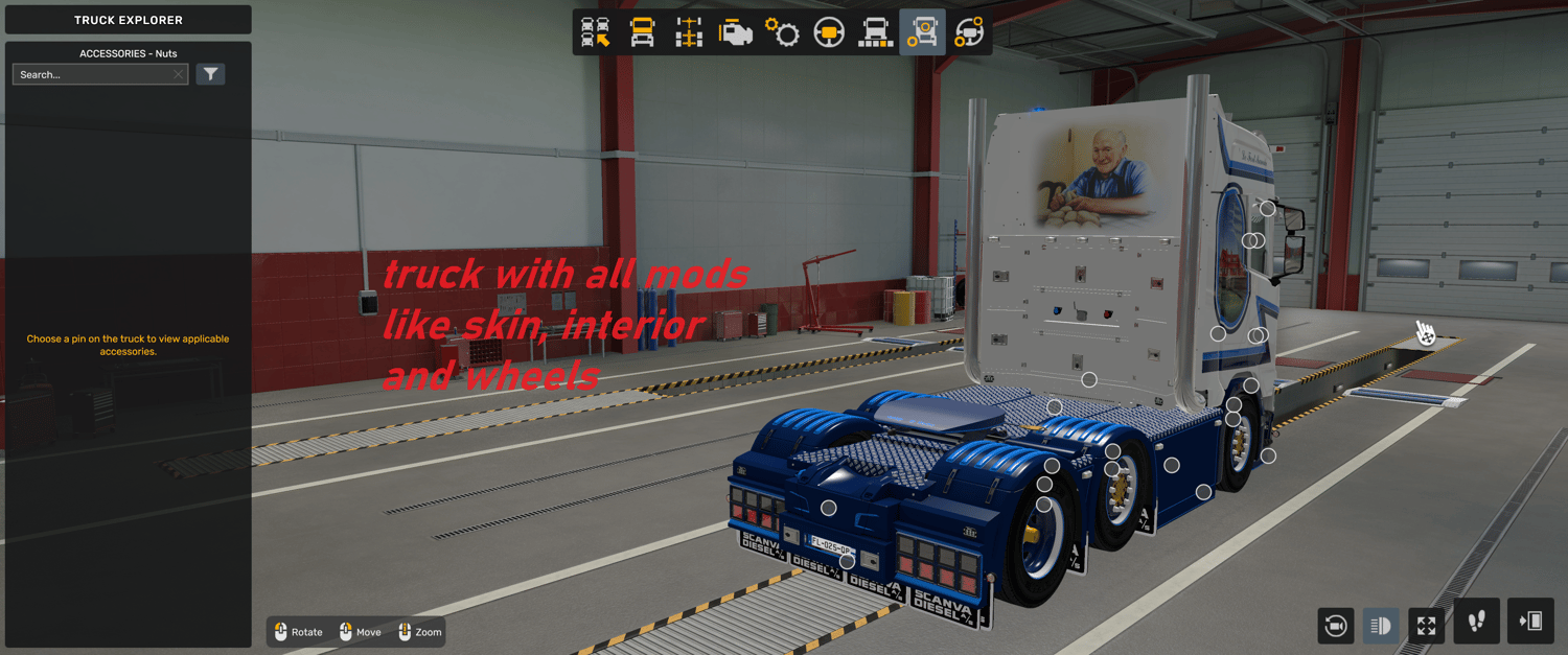Replaced base SCS S model and tuning addons, using with other mods or types of nextgen cabins cause dont work correct. Scania From D´Hoine with tuning options