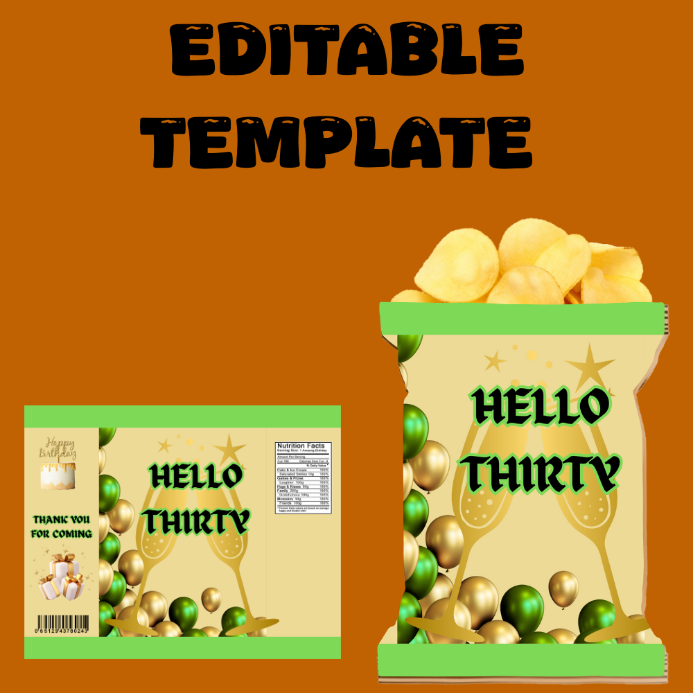 Make your 30th birthday party unforgettable with our custom chip bag PNG design – the perfect digital decoration for a milestone celebration!