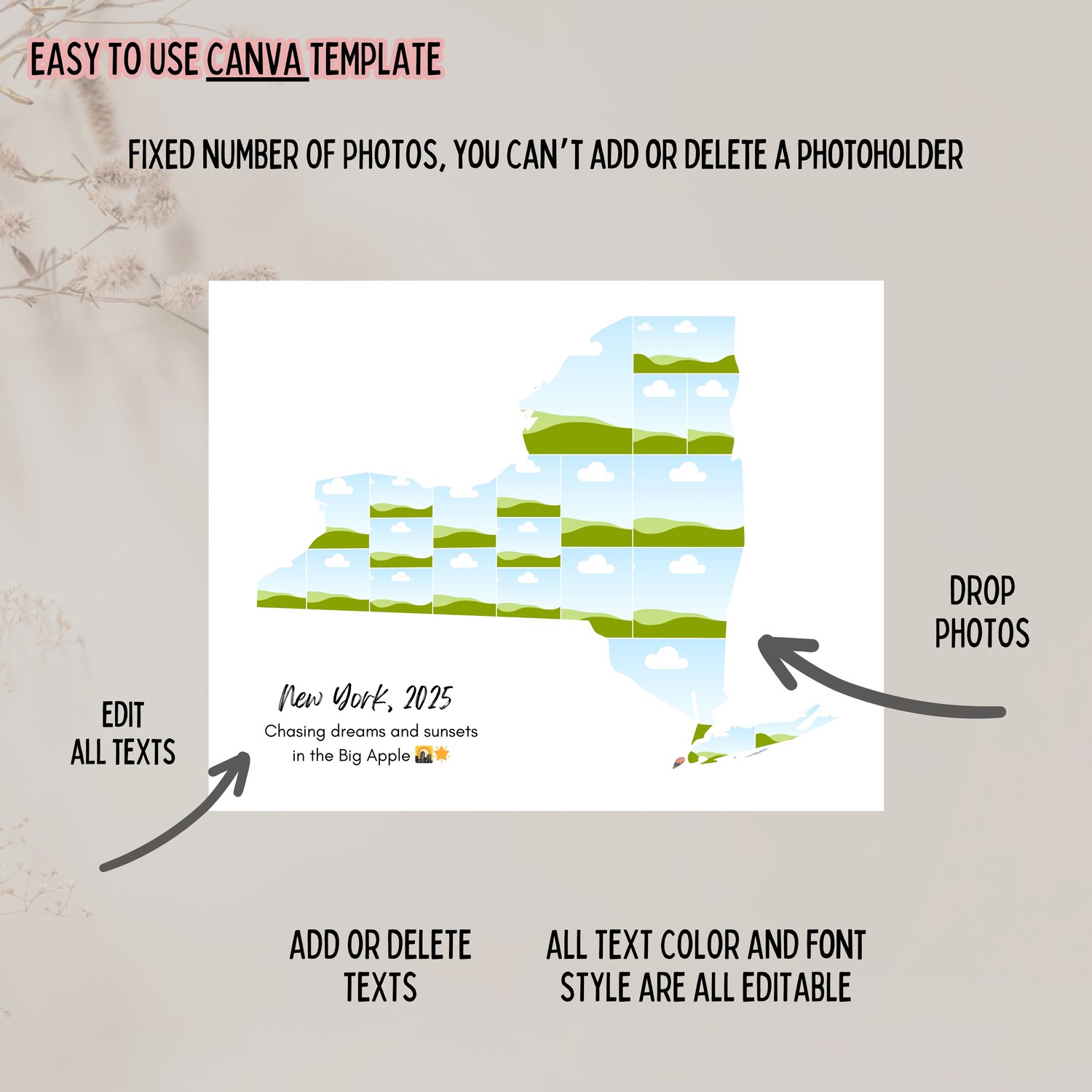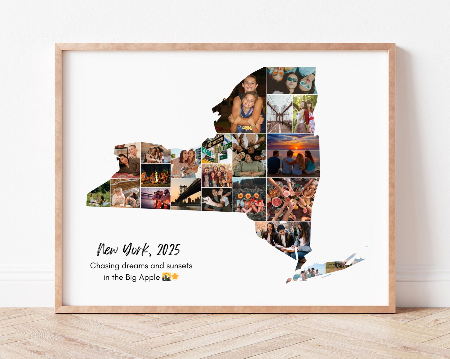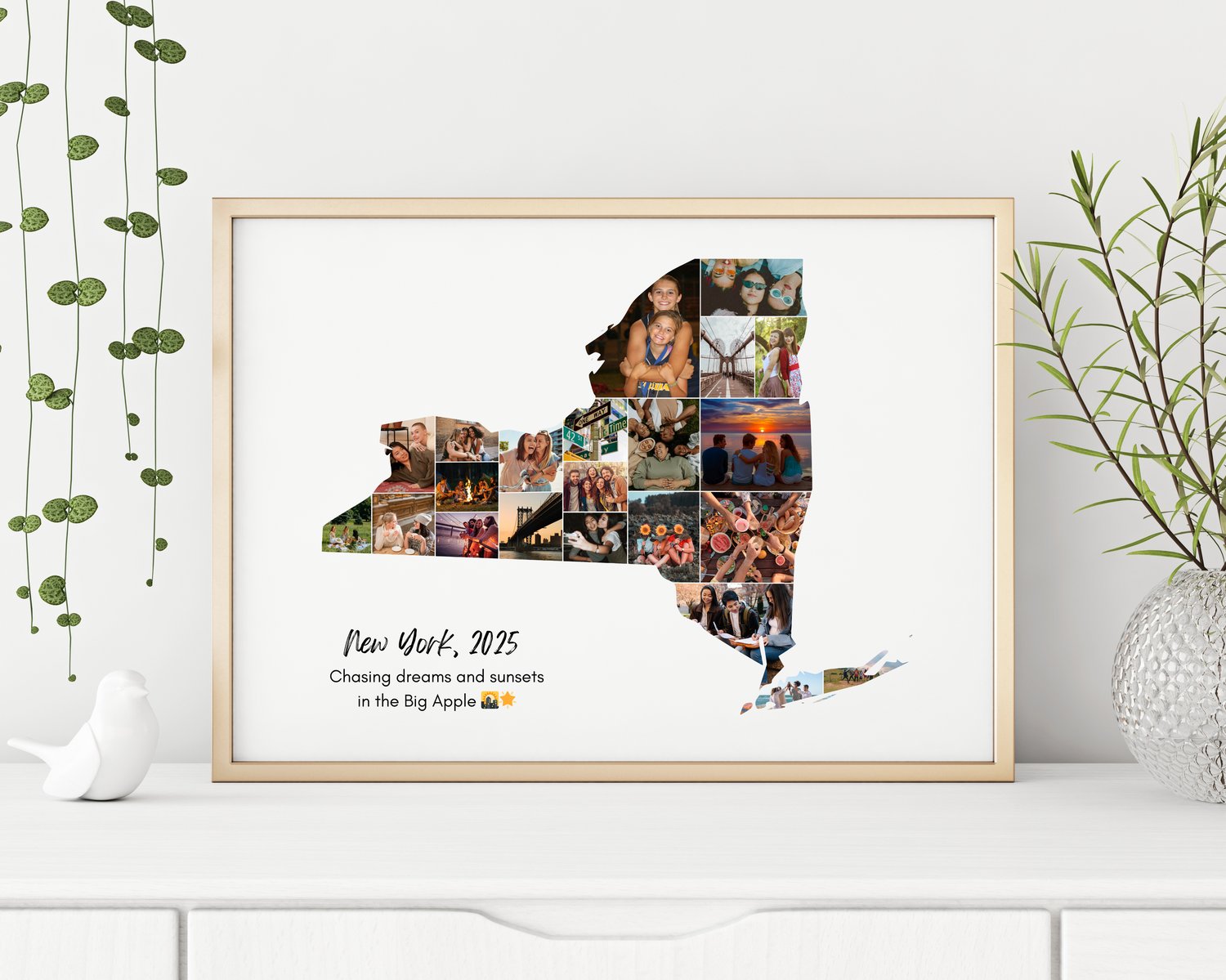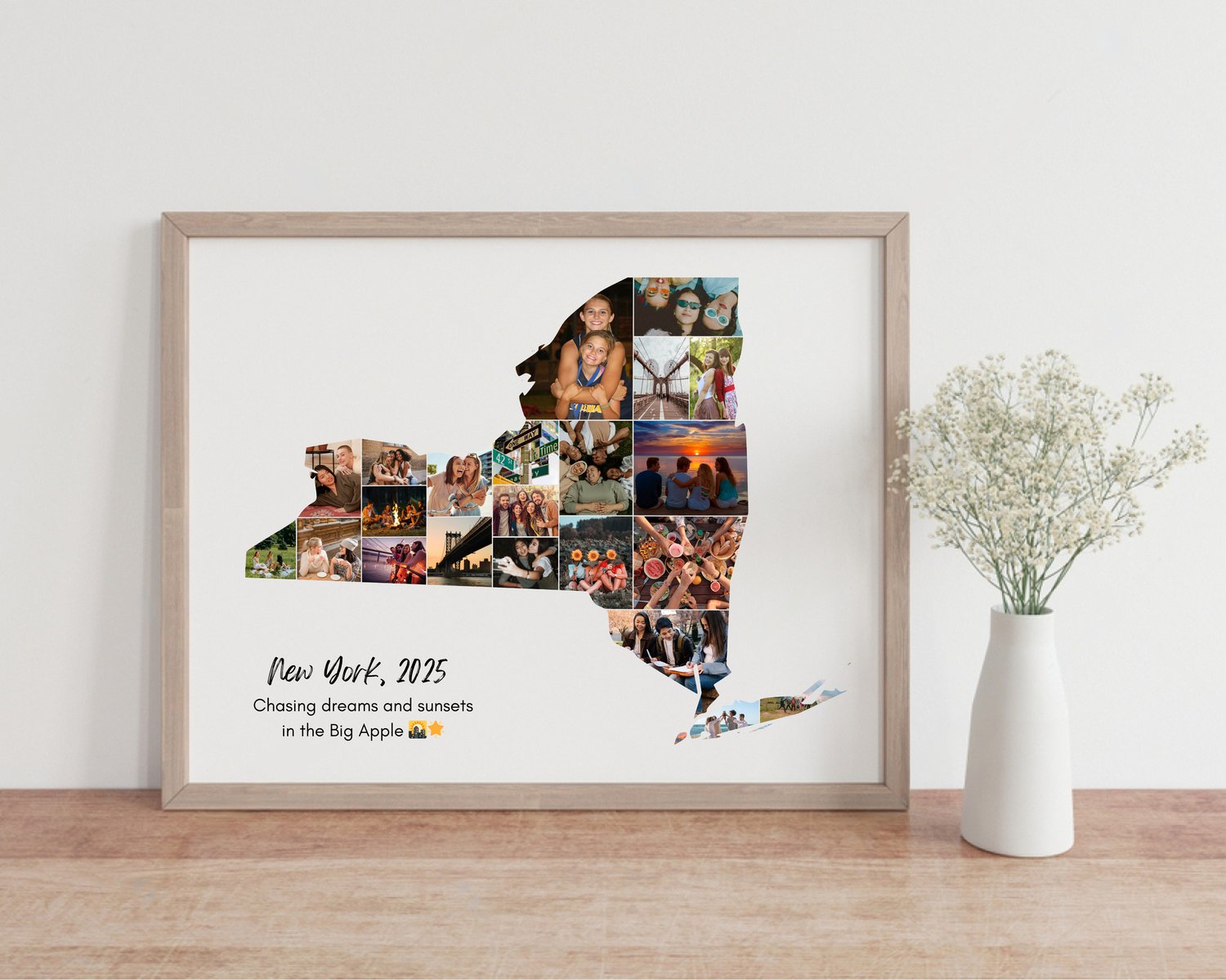 Custom New York gift photo collage, NY State map wall art, usa map Personalized gift, Travel Photo map, Anniversary Gift, DIGITAL