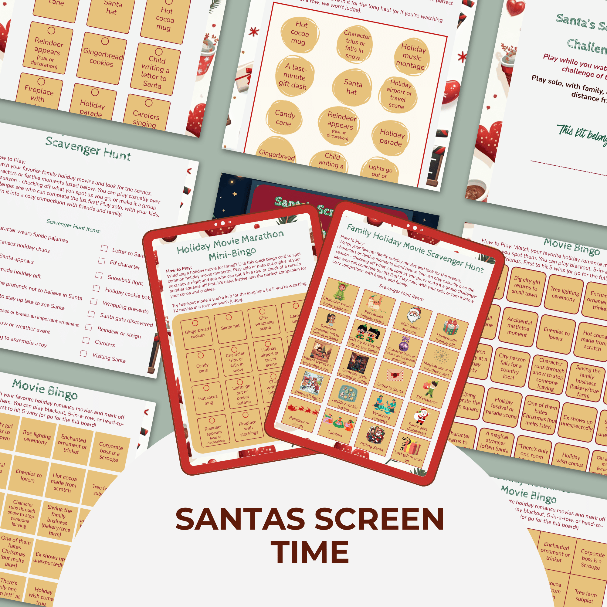 A fun Holiday themed movie bingo, watch movies and mark items off your bingo board when you spot them, includes romance, family movies and movie marathon bingo.