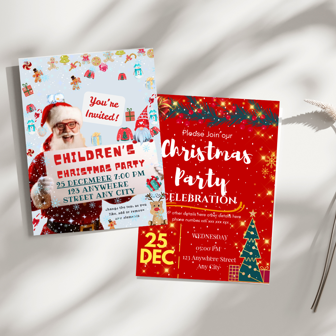 - 2 Christmas Party Invitation Templates 🎉(one for adults and one for children)