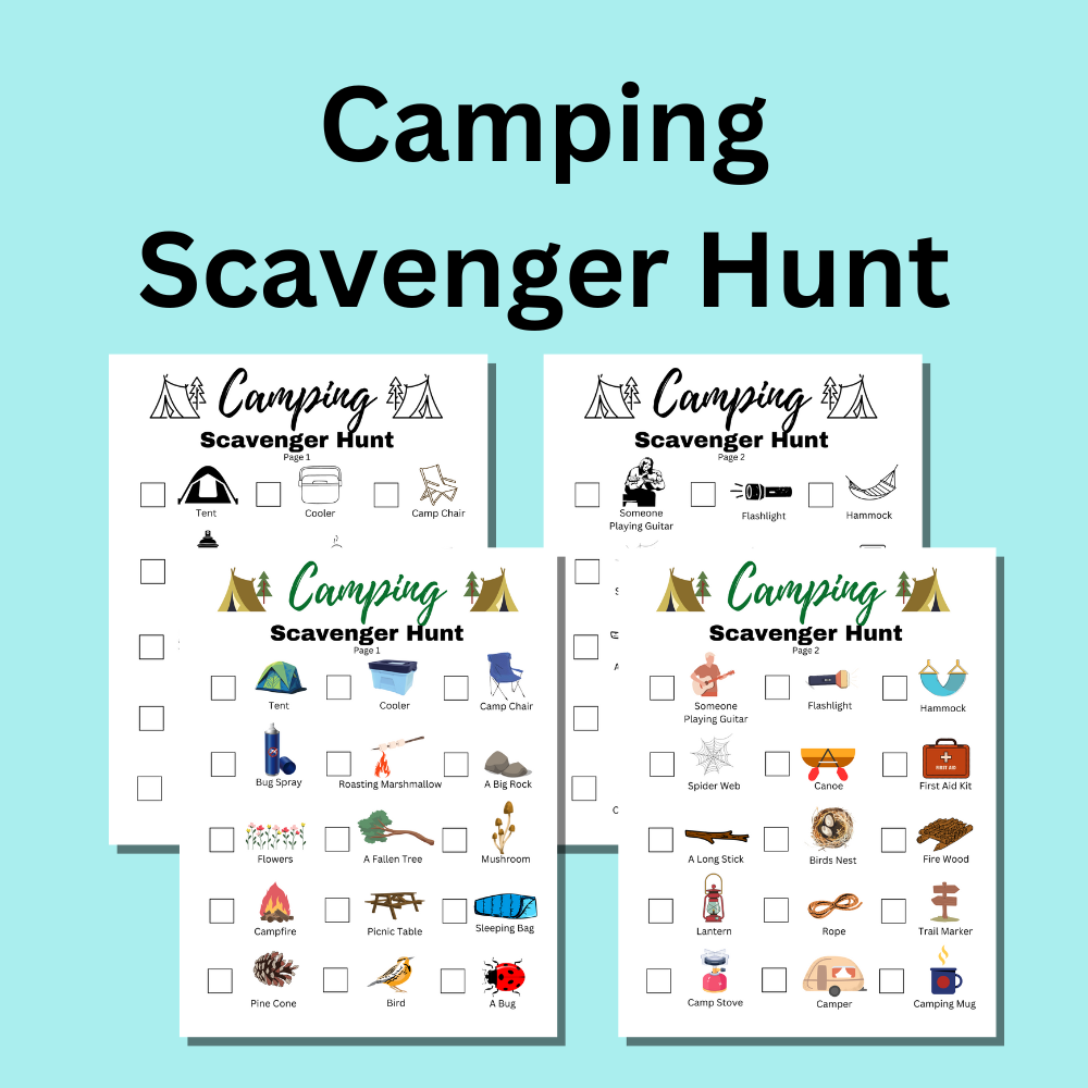 Make your camping trips even more fun with this Camping Scavenger Hunt. Included are color and black and white versions for your printing preferences. Laminate and use again and again!