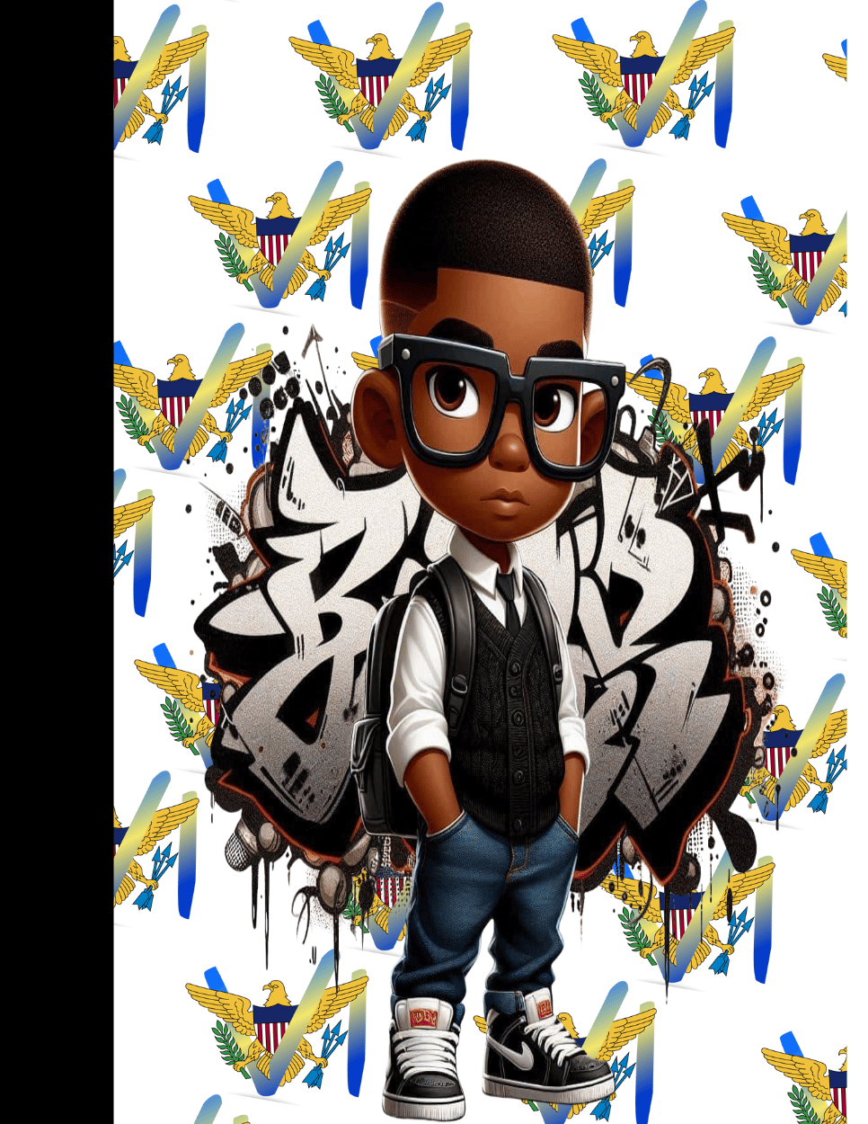Composition Notebook: African American Boy Glasses/VI Interlocked (Front ONLY)