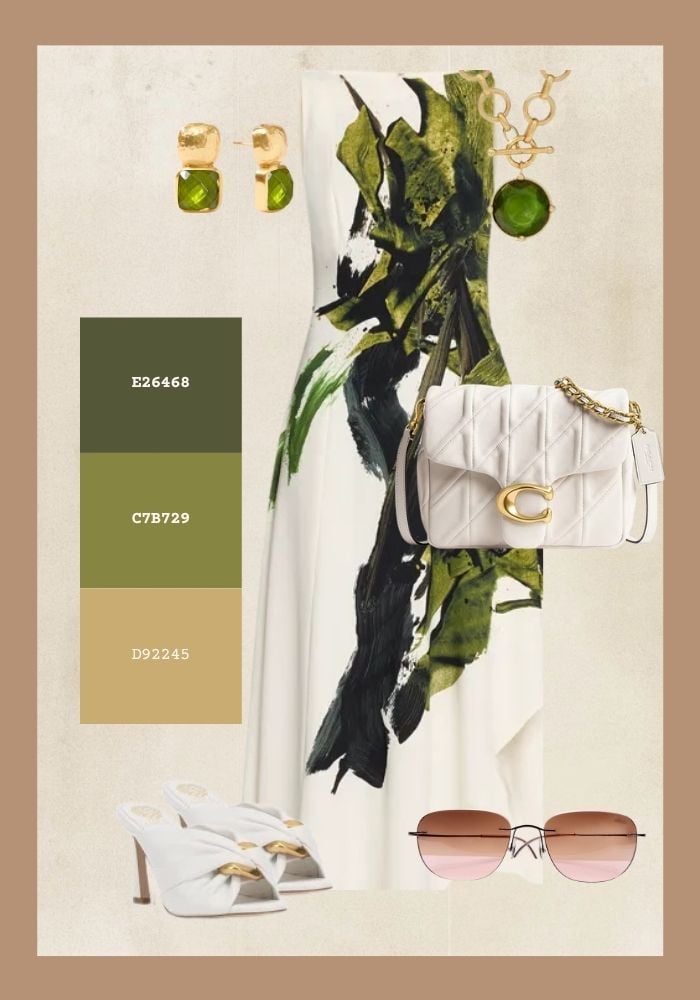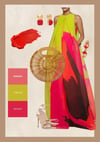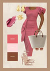 - A designer mood board featuring both outfits