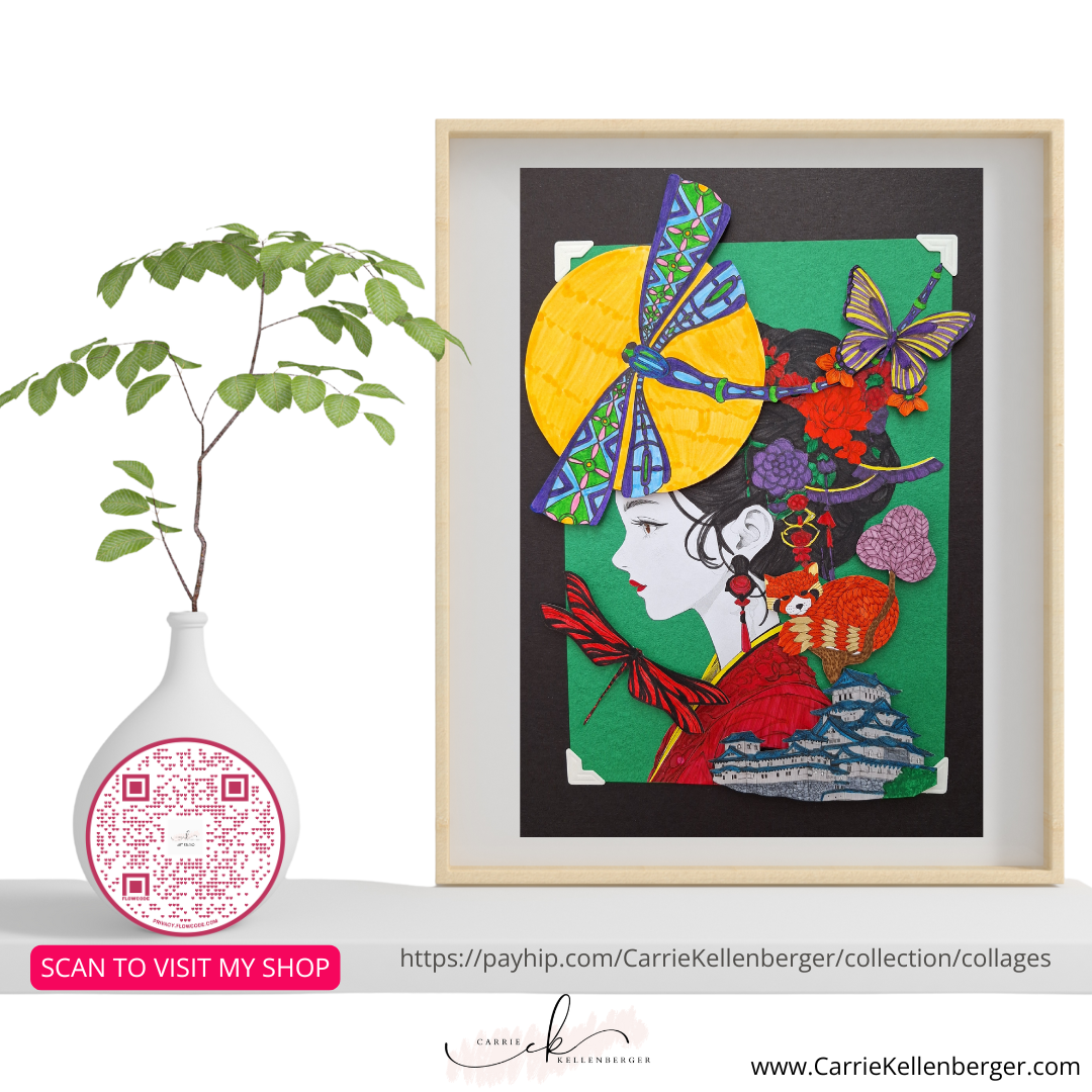 My paper cutting technique adds an extra 3D dimension of beauty and intricacy to each design, making my collages a delightful keepsake. They’re meant to brighten any space: an office cubby, a senior’s bedside, a child’s room, a sunny kitchen, or anywhere your heart desires.