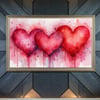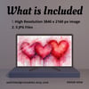 - Features soft, blended pink and red watercolor hearts with an abstract, artistic flair