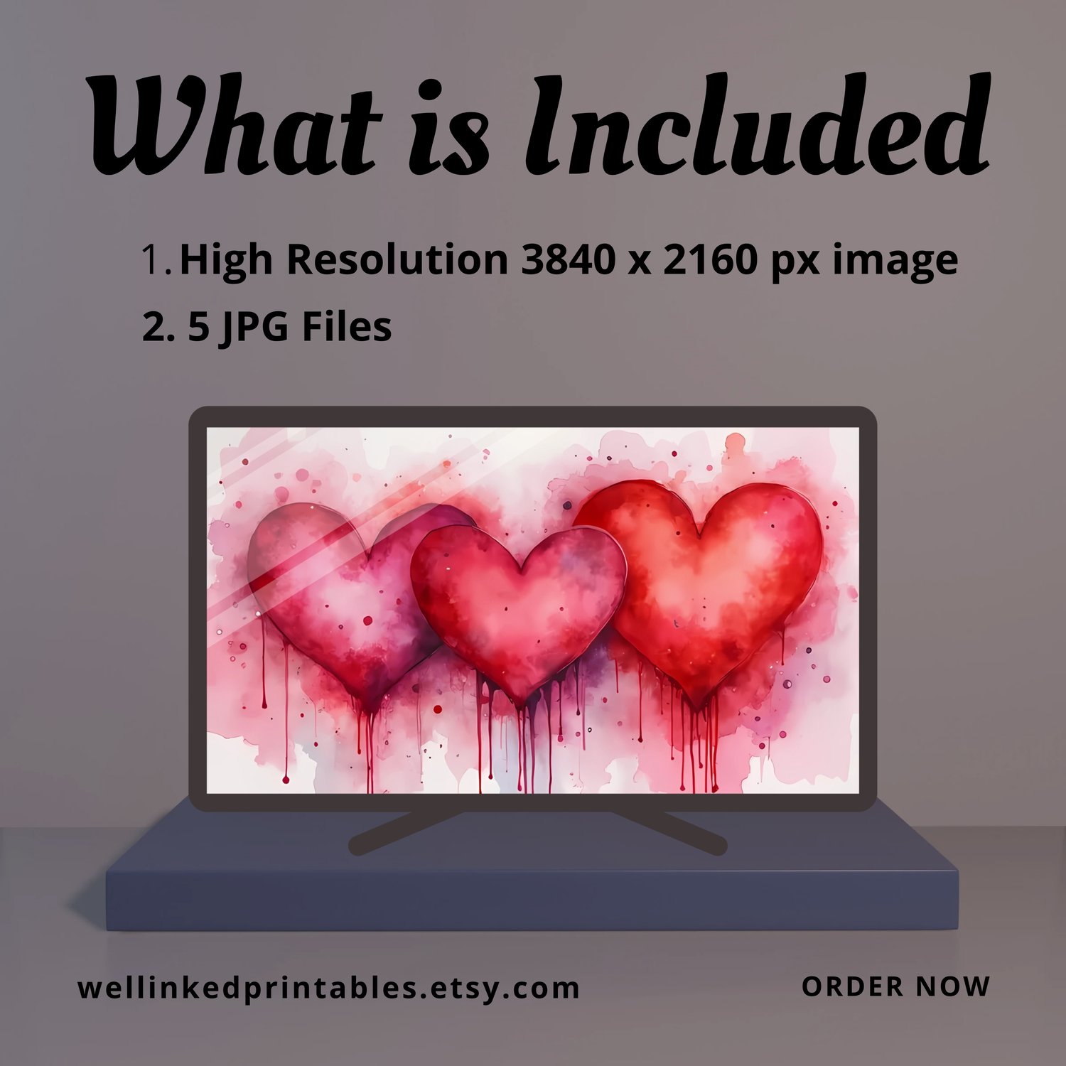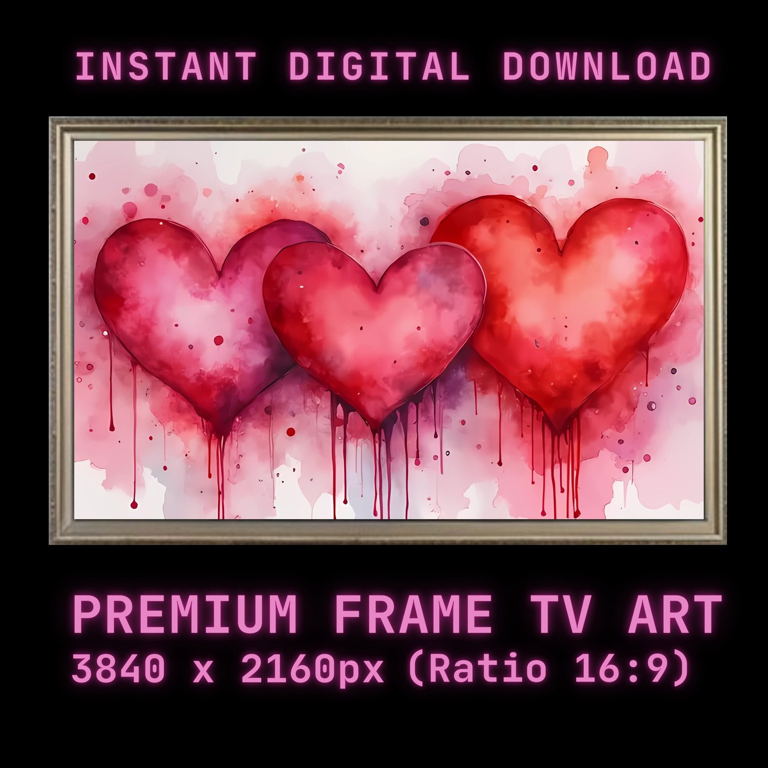 Transform your digital space with our stunning Valentine's Day Frame TV Art—a unique blend of modern abstract design and romantic watercolor artistry. This high-resolution digital download features an elegant mix of pink and red watercolor hearts, beautifully rendered on a textured background. Perfectly optimized for Samsung Frame TVs and other digital displays, this artwork adds a touch of romance and contemporary style to any room.