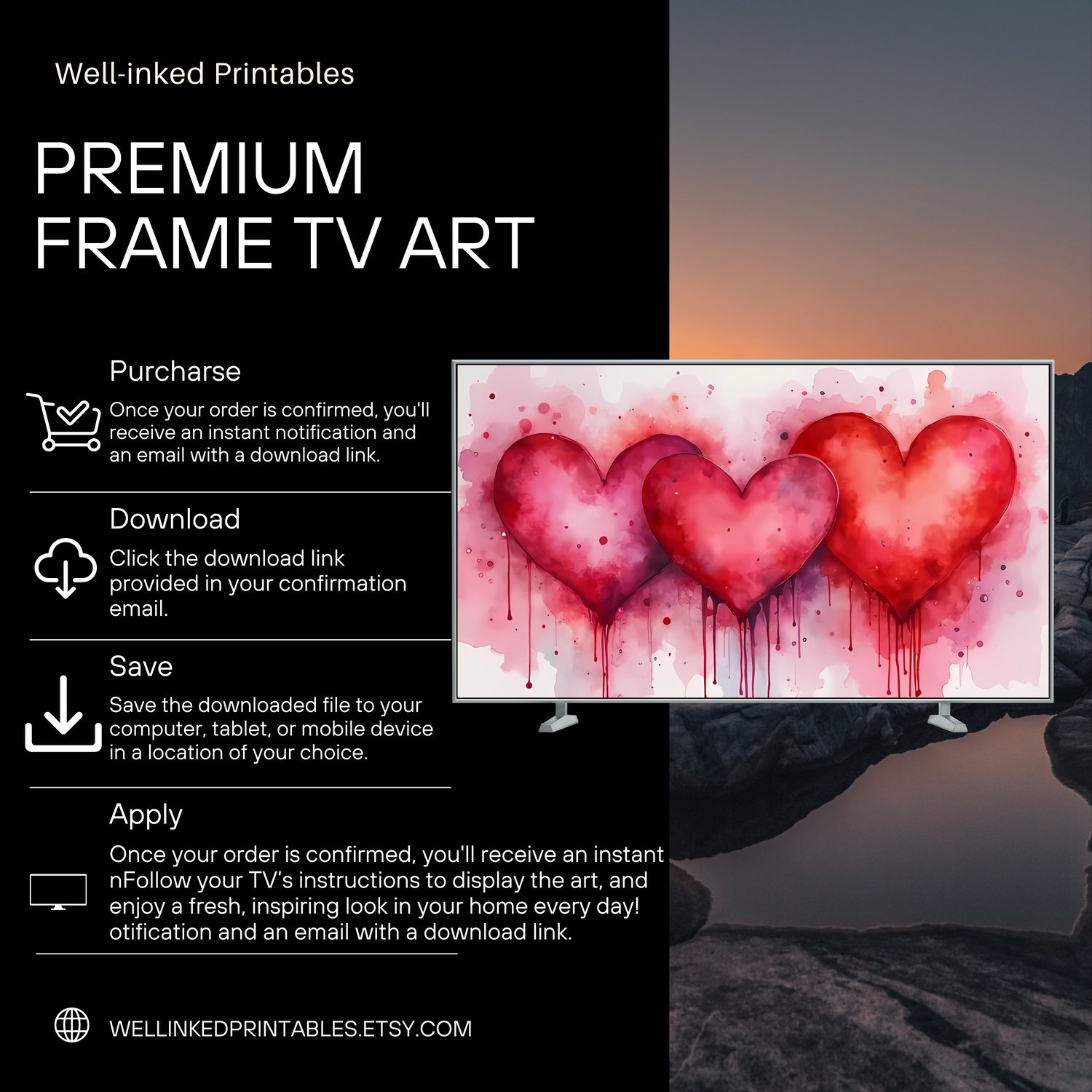 1. Purchase: Add this Valentine's Day Frame TV Art to your cart and complete the secure checkout.