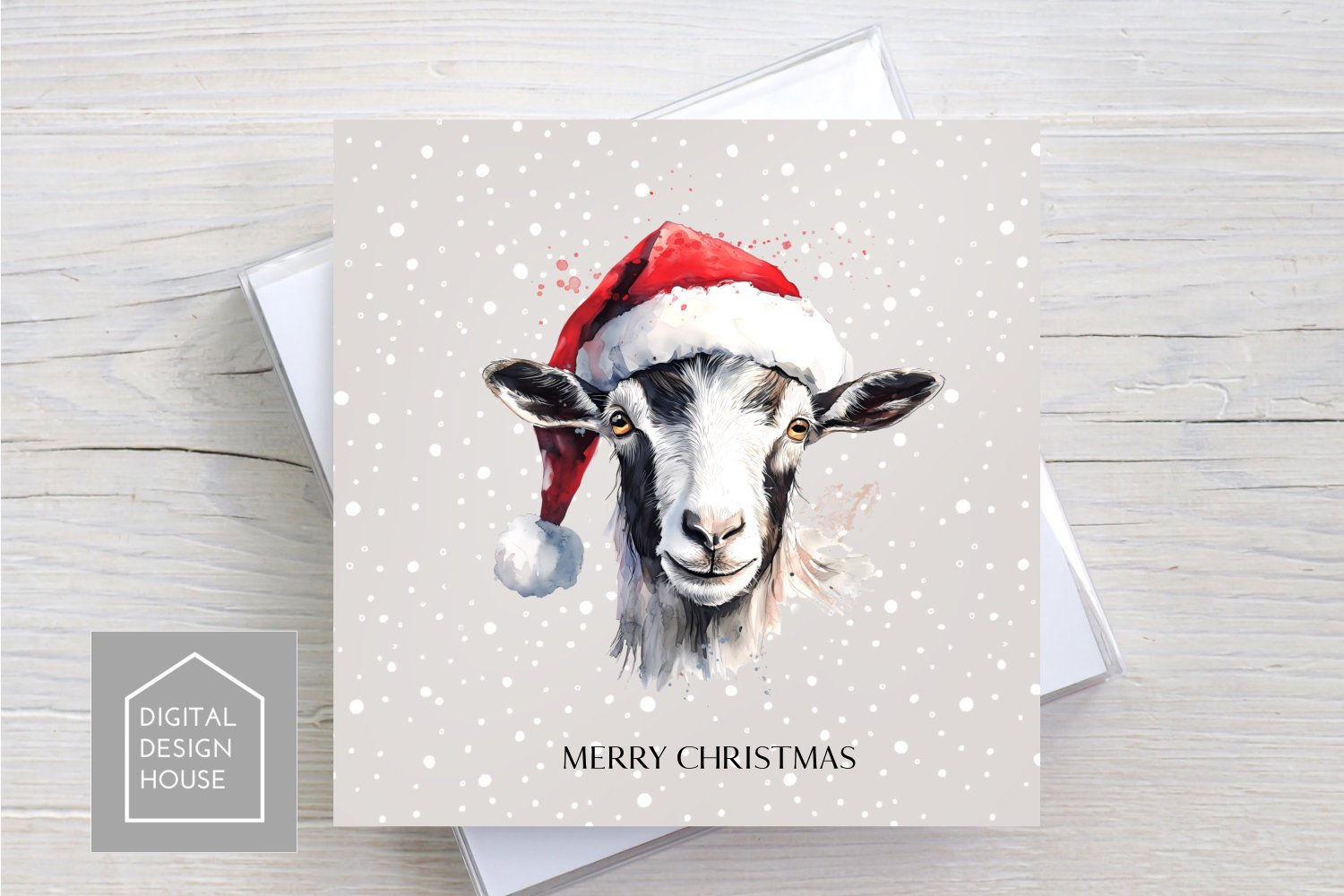 This listing is for a Festive Goat wearing a Santa Hat. This is a watercolour illustration in a splashy watercolour style. You get 2 PNGS the Goat and a square background. Use with or without the background. There are more animals in this collection you can see them in my shop.