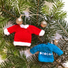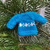 Knit in the round from the top down, these cozy jumpers would make a really cute garland or tree decoration. A method for making little hangers from a paperclip is also provided in the pattern.