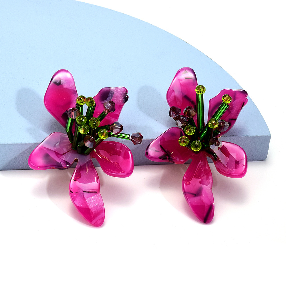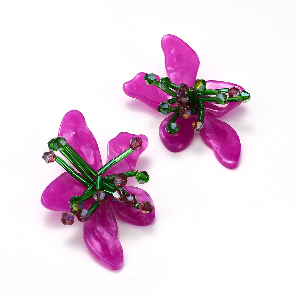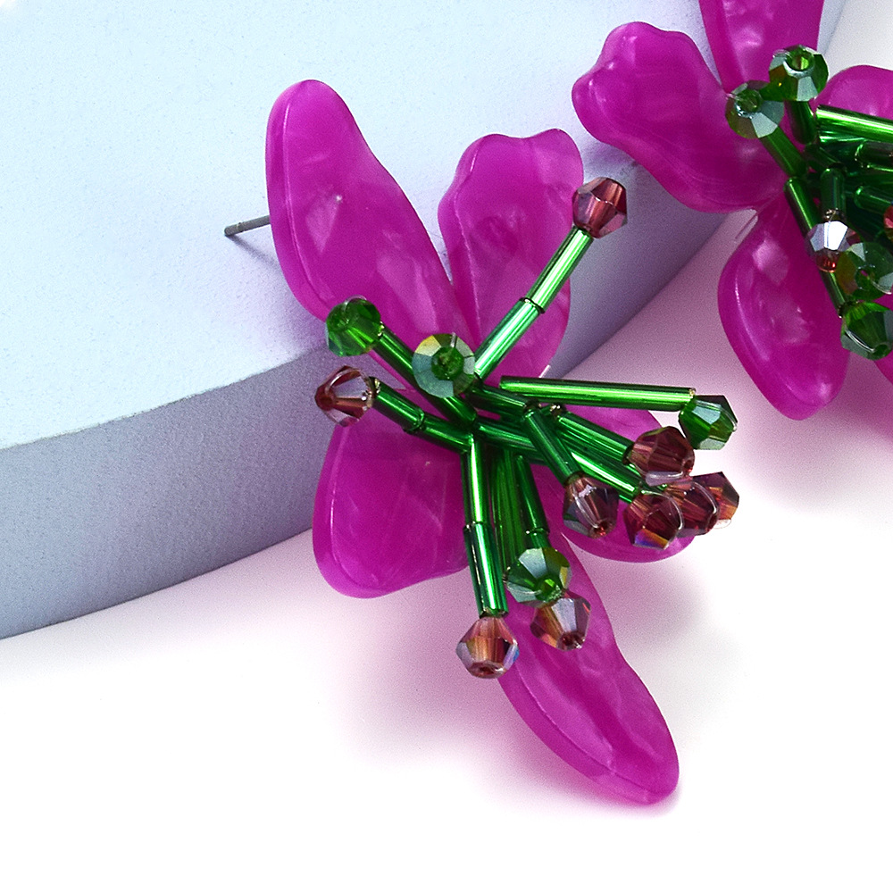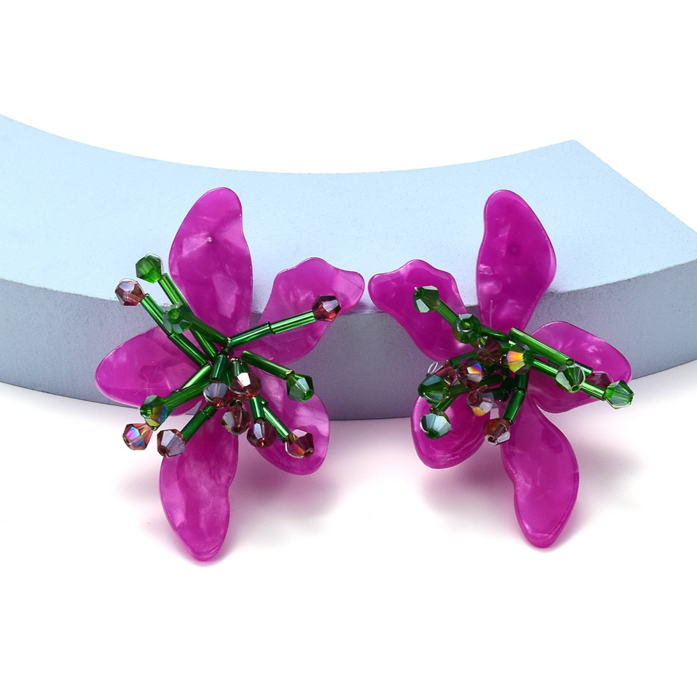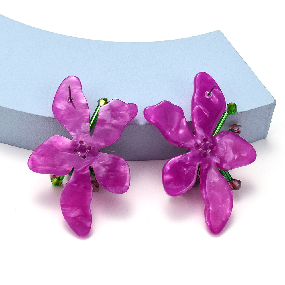 Boho beach resin beaded purple flower exaggerated irregular earrings