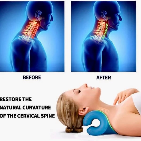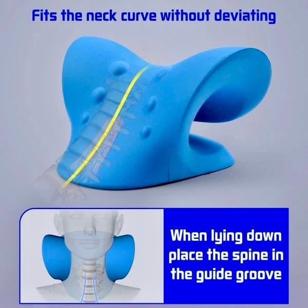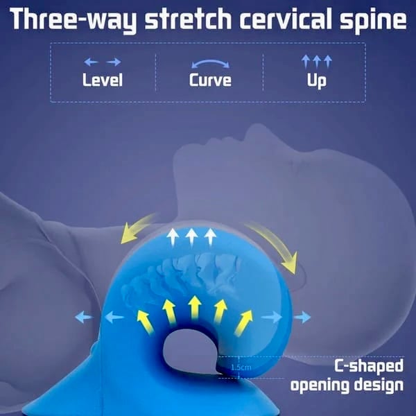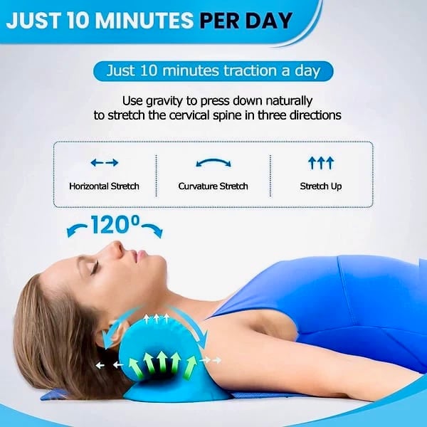 The Cervical Traction Pillow gently and naturally stretches your neck in order to help decompress your spine, increase blood flow, and circulation, and stretch your muscles while helping to align the cervical curve.