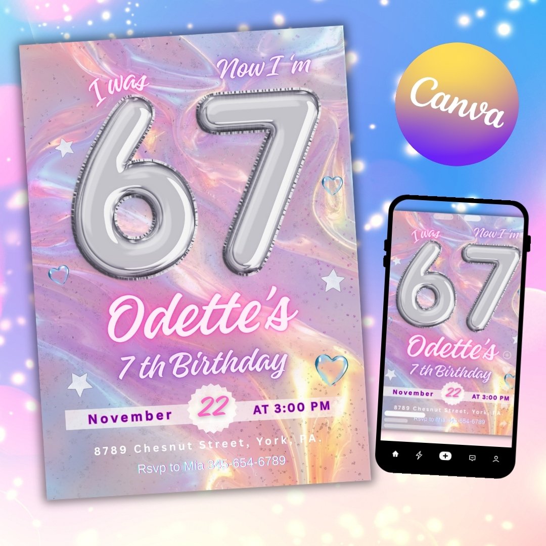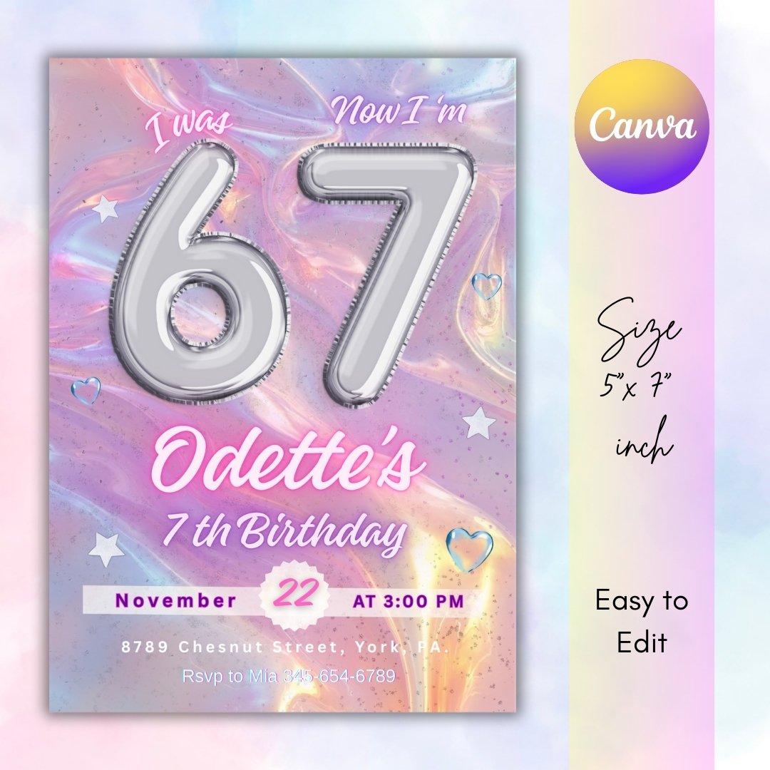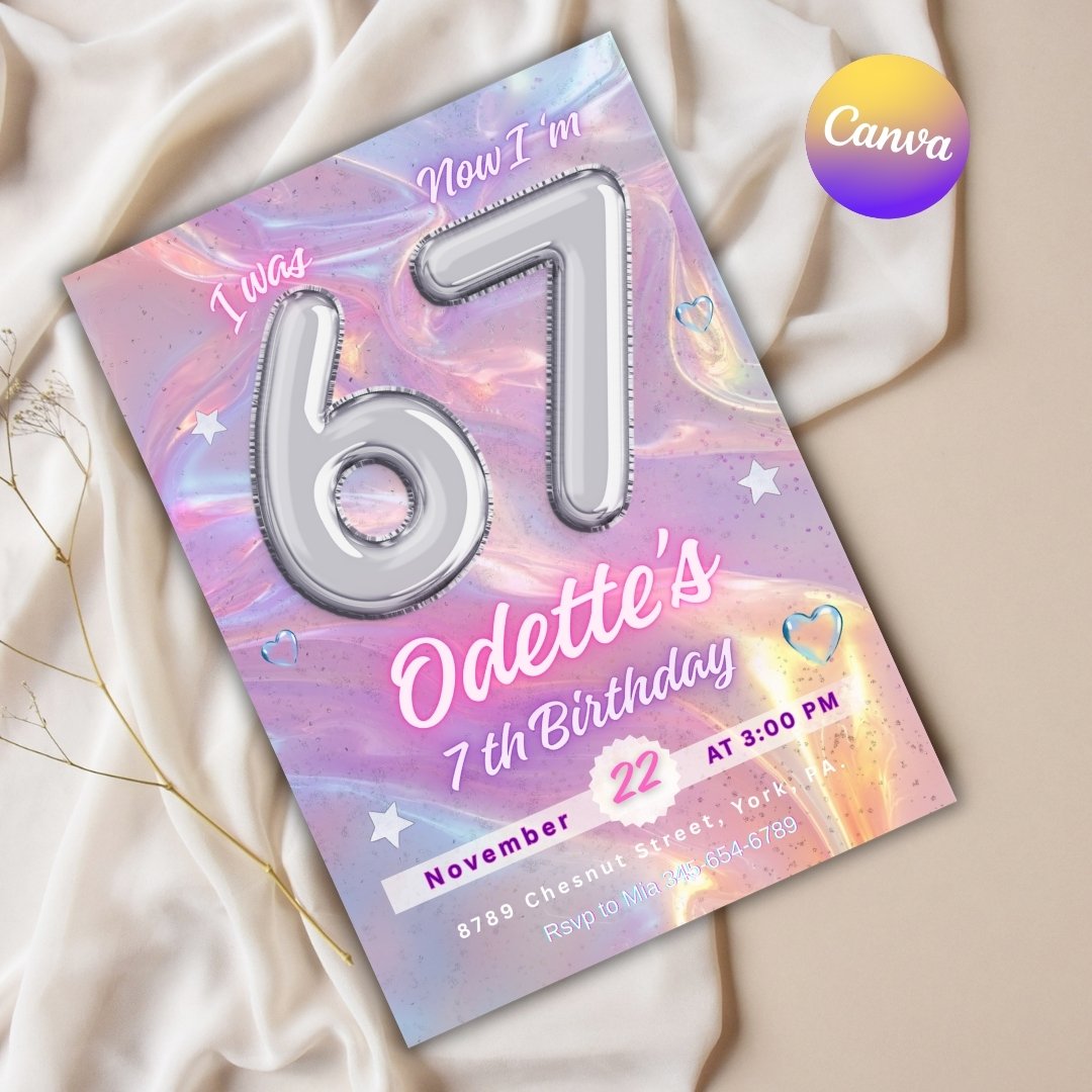 Six Seven Birthday Invitation, Editable Meme Trending Six Seven Party Invite, Kids Birthday Digital Invite