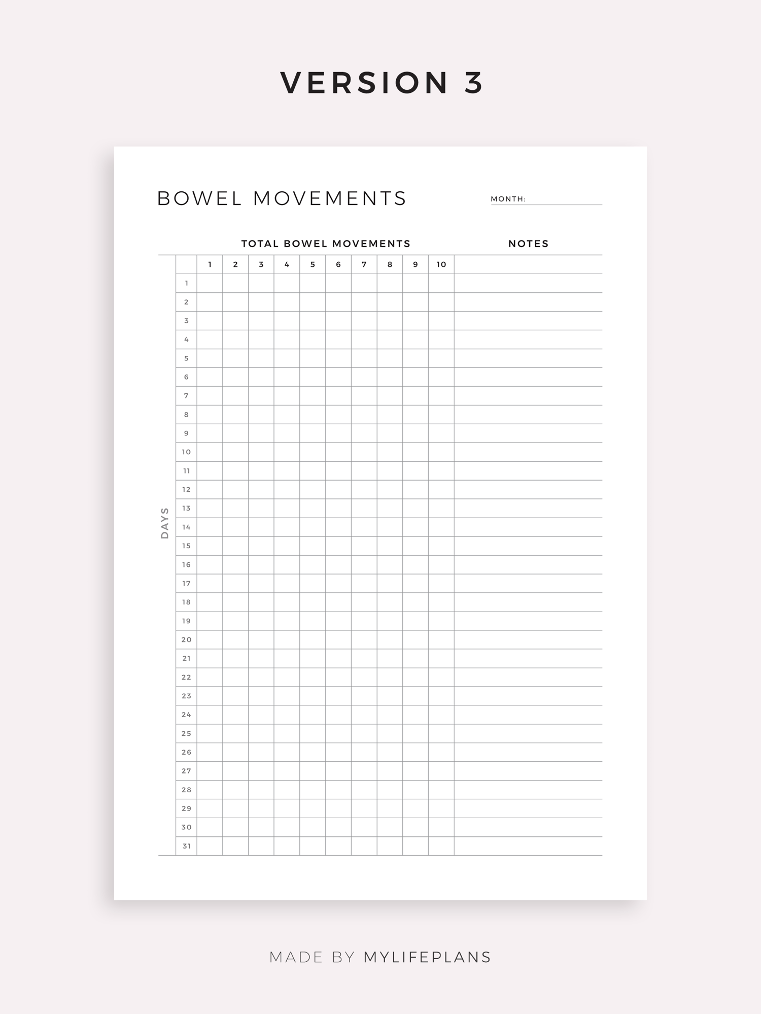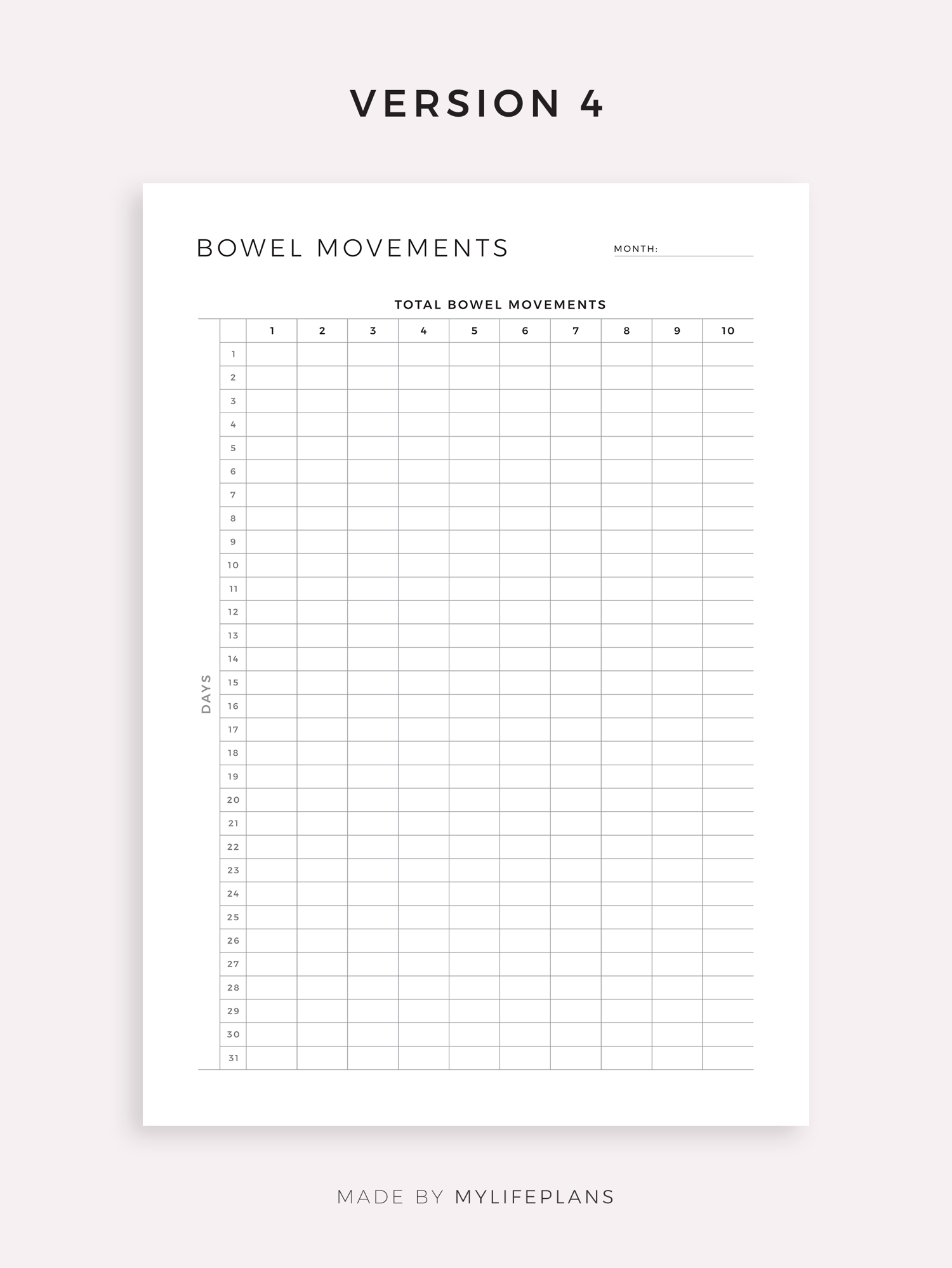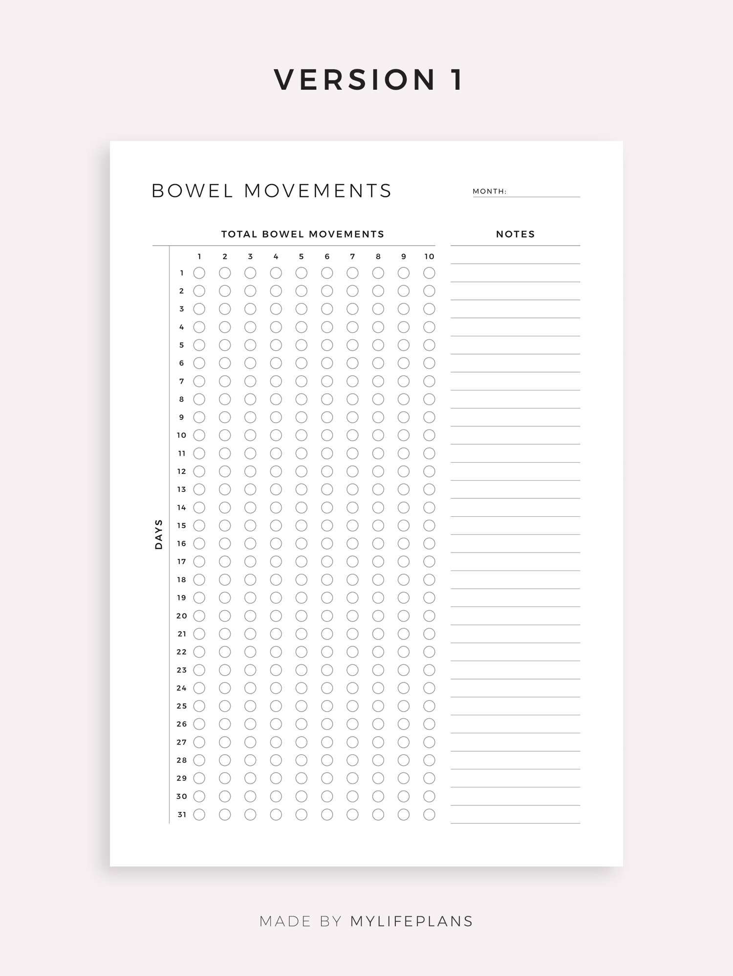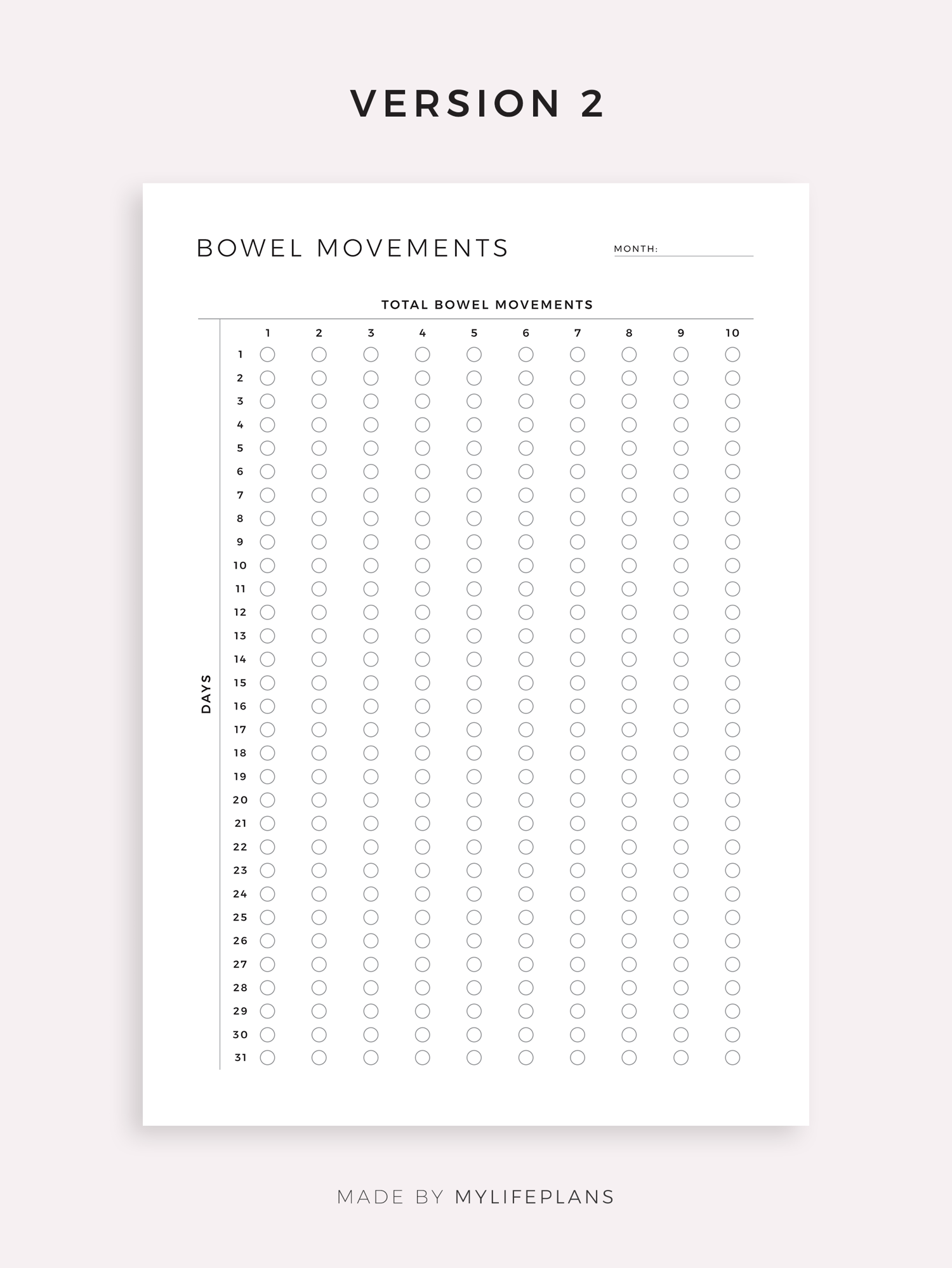 This is a printable bowel movement tracker — just download, print, and start using it right away.