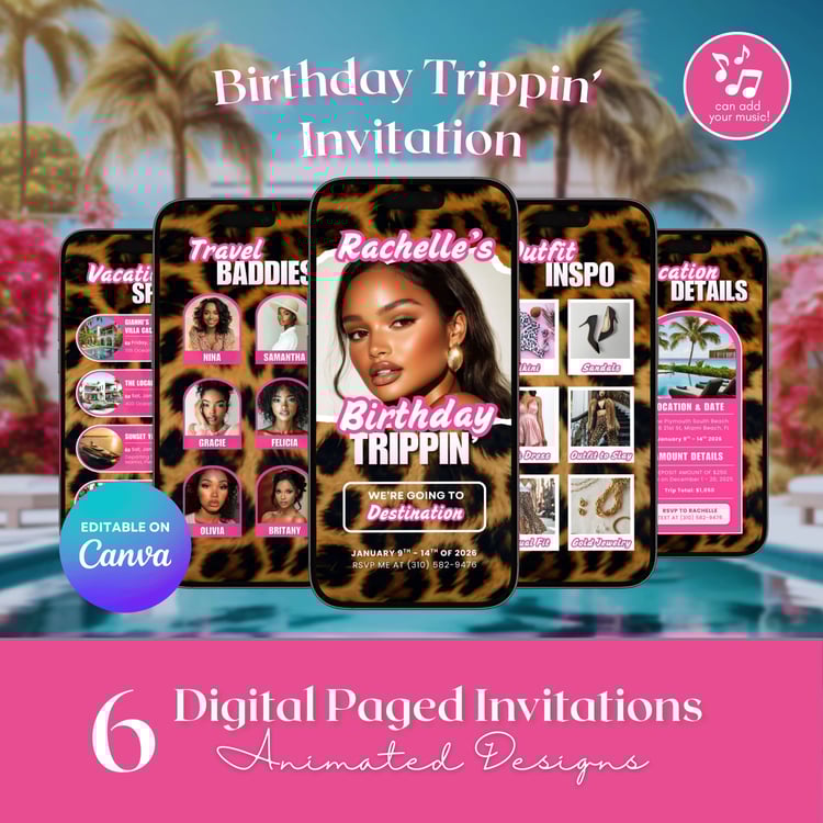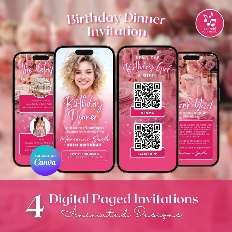 Customize your invitation instantly in Canva (Free or Pro) โ edit the name, age, date, venue, and message to match your party. No design skills needed! Once youโre done, simply download your animated video invitation and share it through Messenger, WhatsApp, Viber, Instagram, TikTok, or email for quick and easy guest delivery.