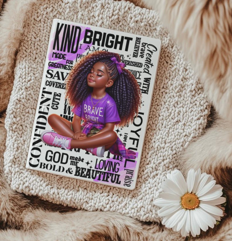 Let your little one’s light shine bright with this inspiring Brave, Bright & Blessed digital planner cover bundle! This 4-piece collection features confident, joyful Afro-American girls in vibrant purple hues, empowering messages, and uplifting affirmations like “Brave, Bright, and Blessed” and “Faith Over Fear.” Perfect for journals, planners, or notebooks—these covers are ready to print and use instantly.