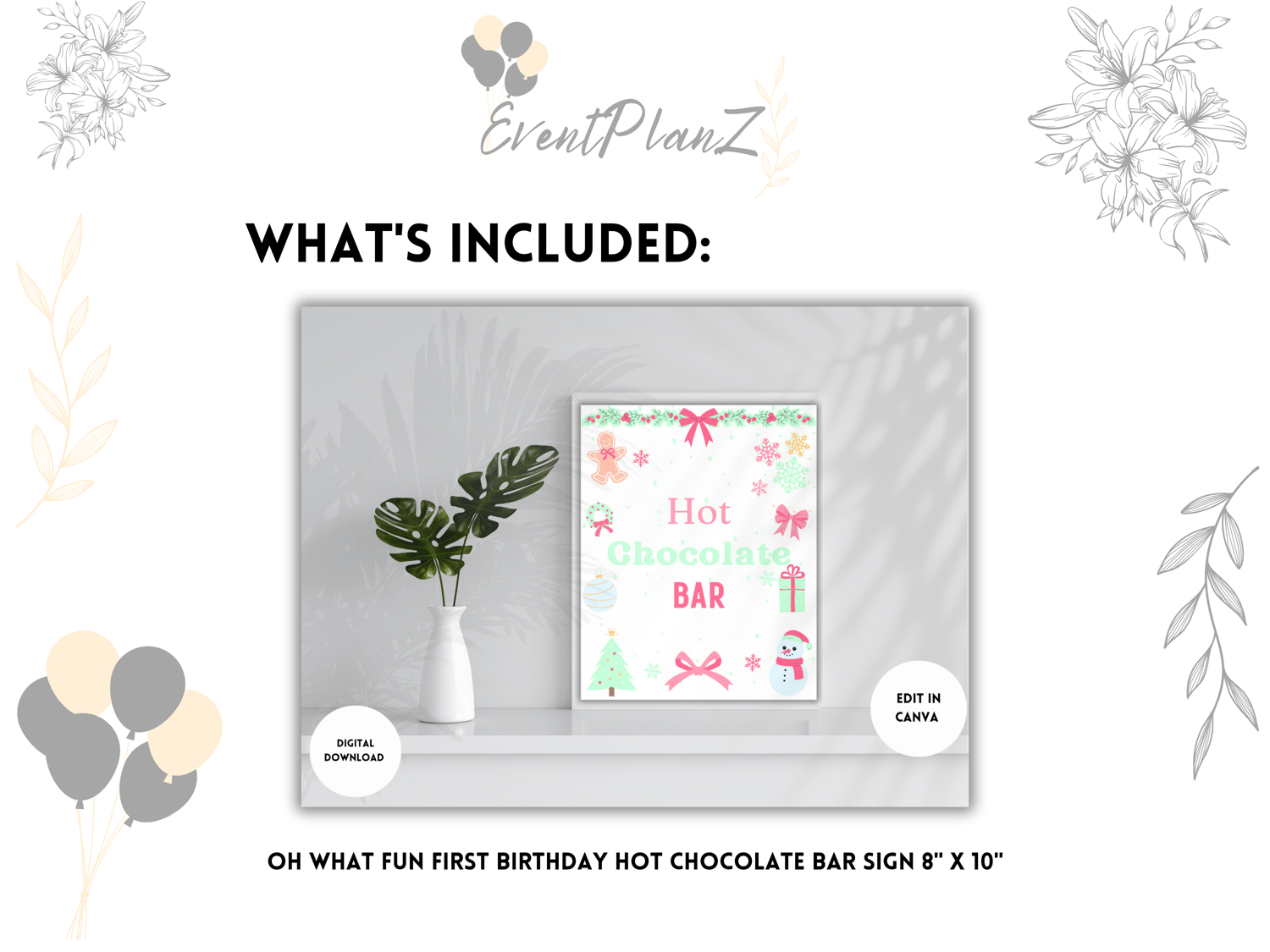 Oh What Fun It Is To Be One First Birthday Hot Chocolate Bar Sign | Christmas 1st Bday Cocoa Stand | Canva Template | Printable Stationery