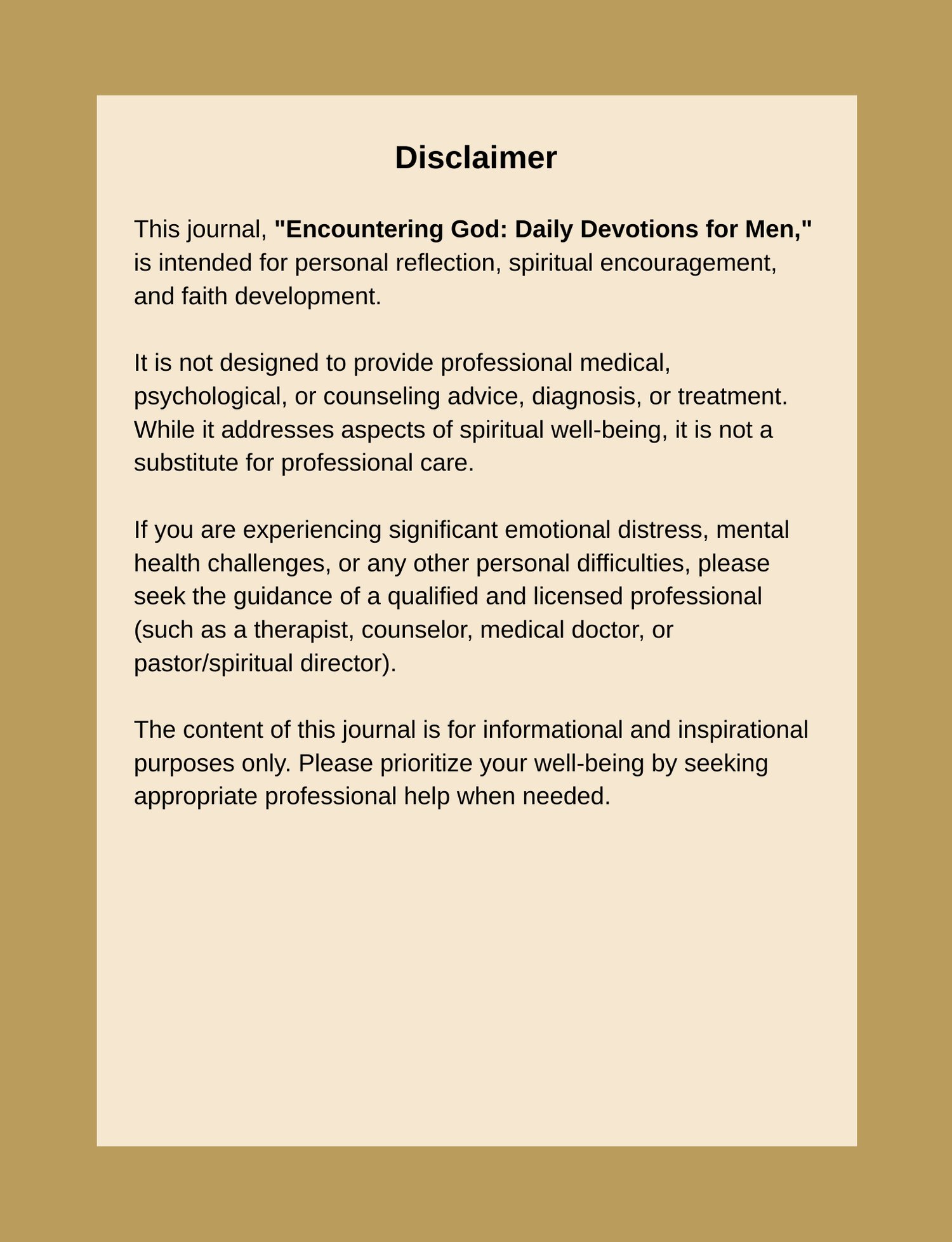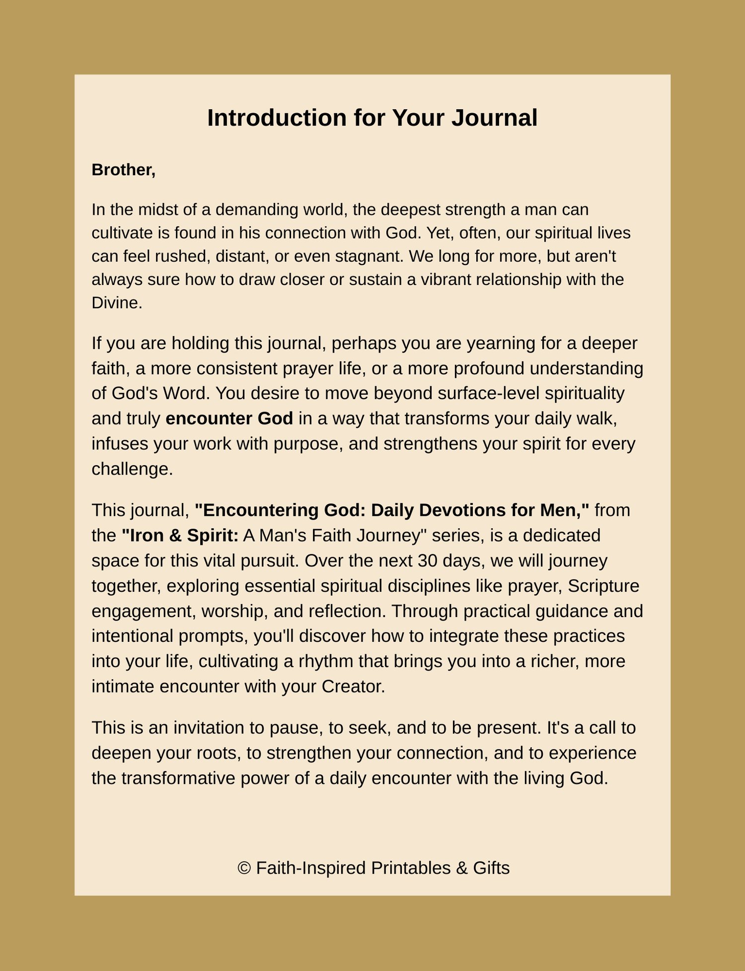 In the demanding and often rushed world of a man's life, it's easy for our spiritual walks to feel distant or stagnant. If you are yearning for a more consistent prayer life, a deeper understanding of God's Word, and a profound encounter with your Creator, this journal is for you.