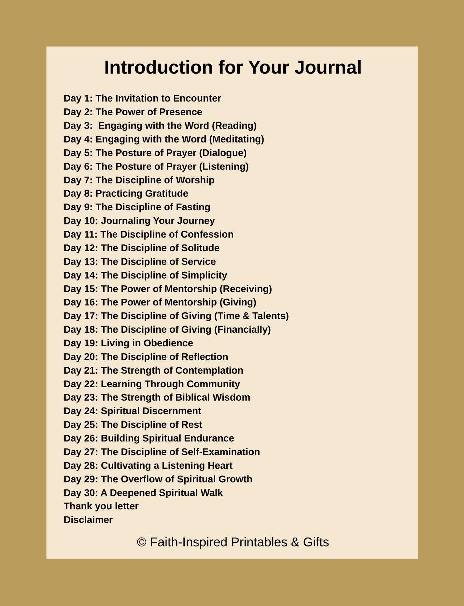 - 30 Daily Devotions: A practical guide to help you engage with essential spiritual disciplines like prayer, worship, confession, and rest.