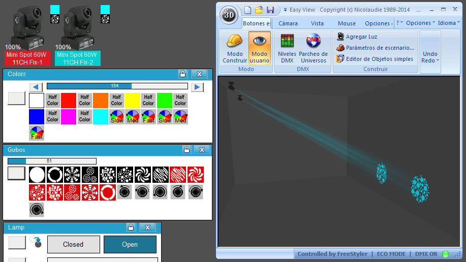 Esta Librería SSL2 está optimizada para trabajar con Magic 3d Easy View. Es decir para ver una representación 3D de las secuencias que estemos realizando con Freestyler, QLC+ o cualquier otro soft que se conecte con Magic 3d.