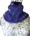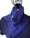The cowl is knit flat, from one end to the other. The combination of garter stitch and ribbed cables makes the design completely reversible, and exactly the same on both sides. This makes it a perfect gift for those who always manage to wear scarves wrong-side out. Buttonholes are added near the end, and buttons are attached during finishing. Cowl can be buttoned in a number of ways, including as a Möbius, if a single twist is added before buttoning.