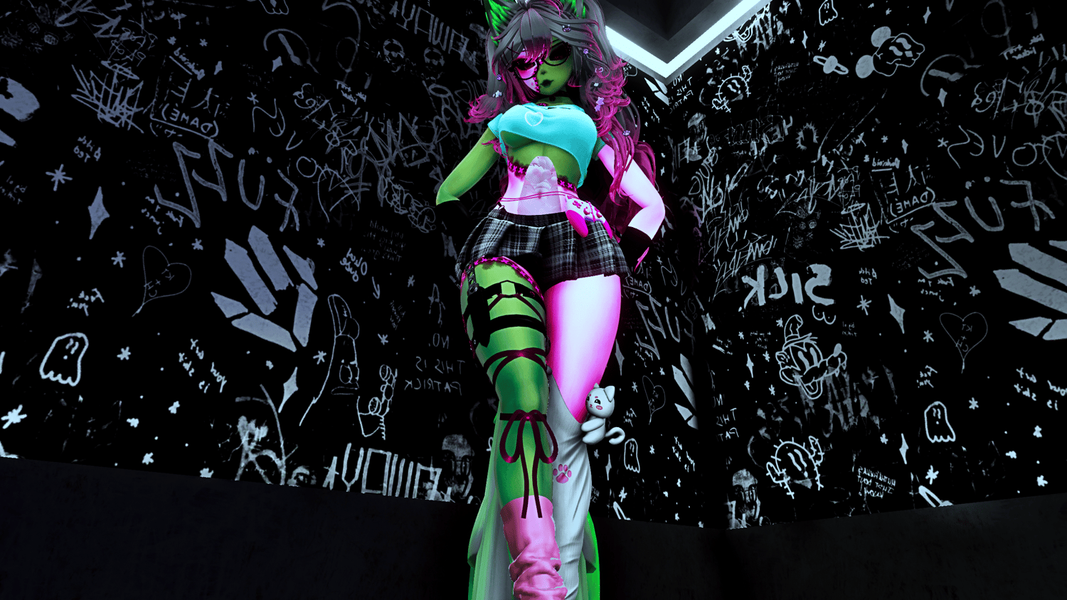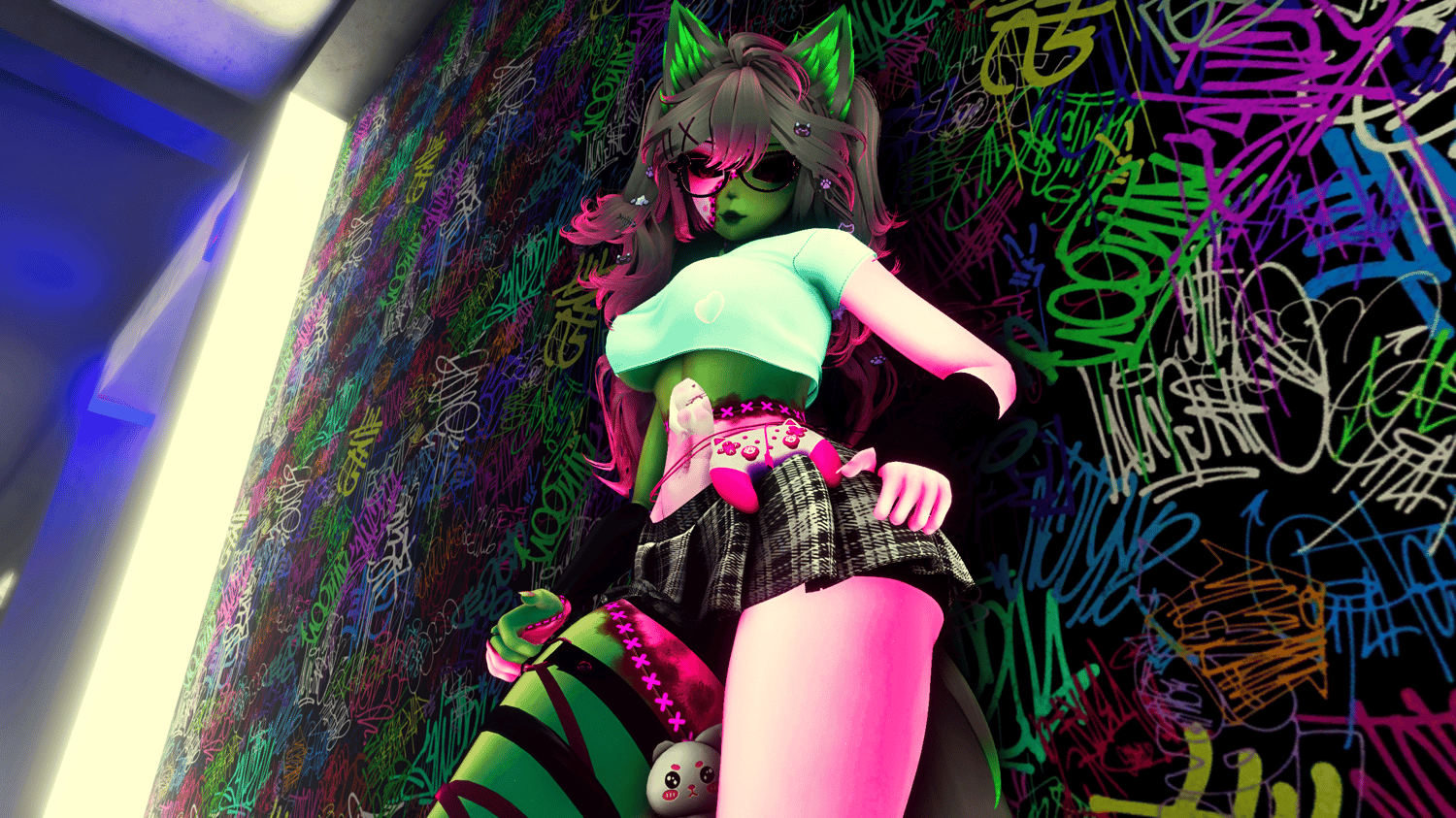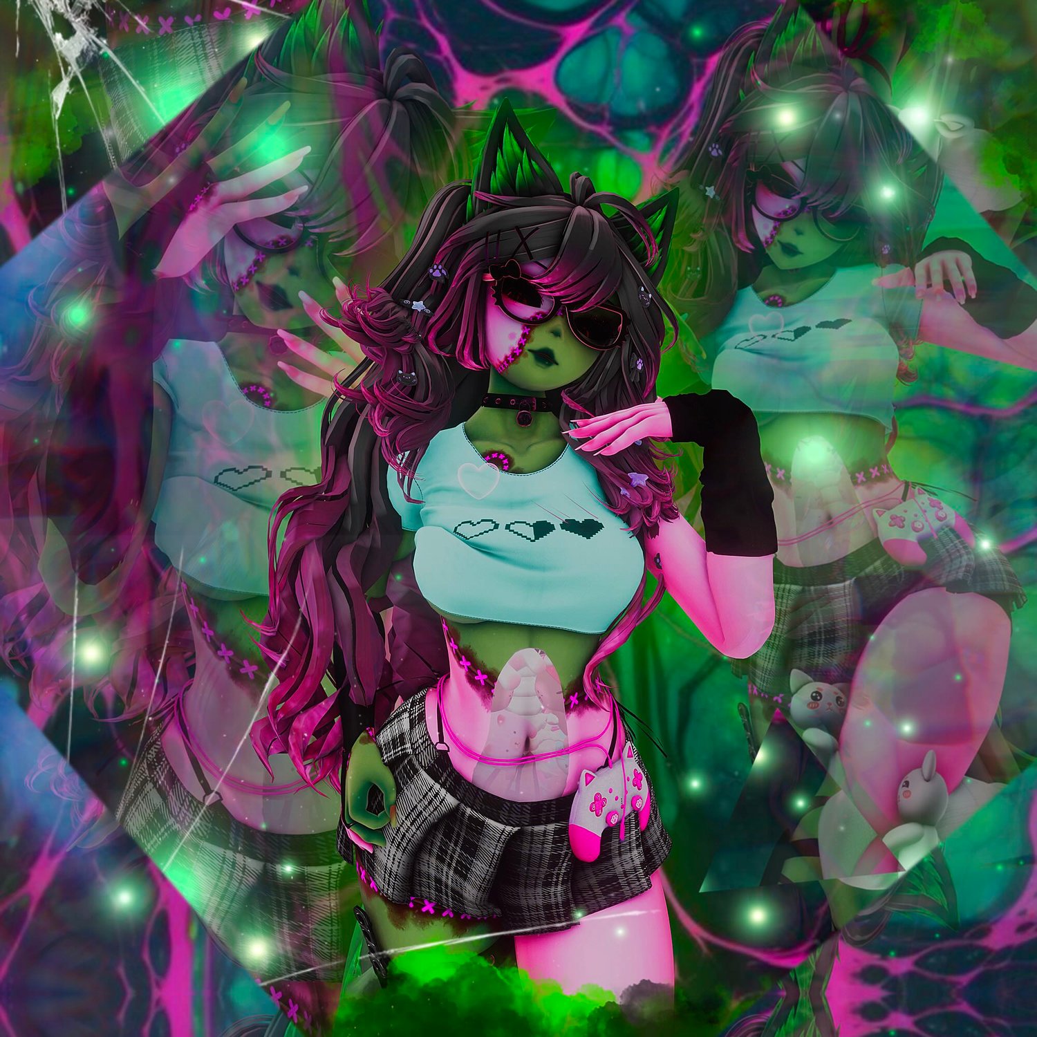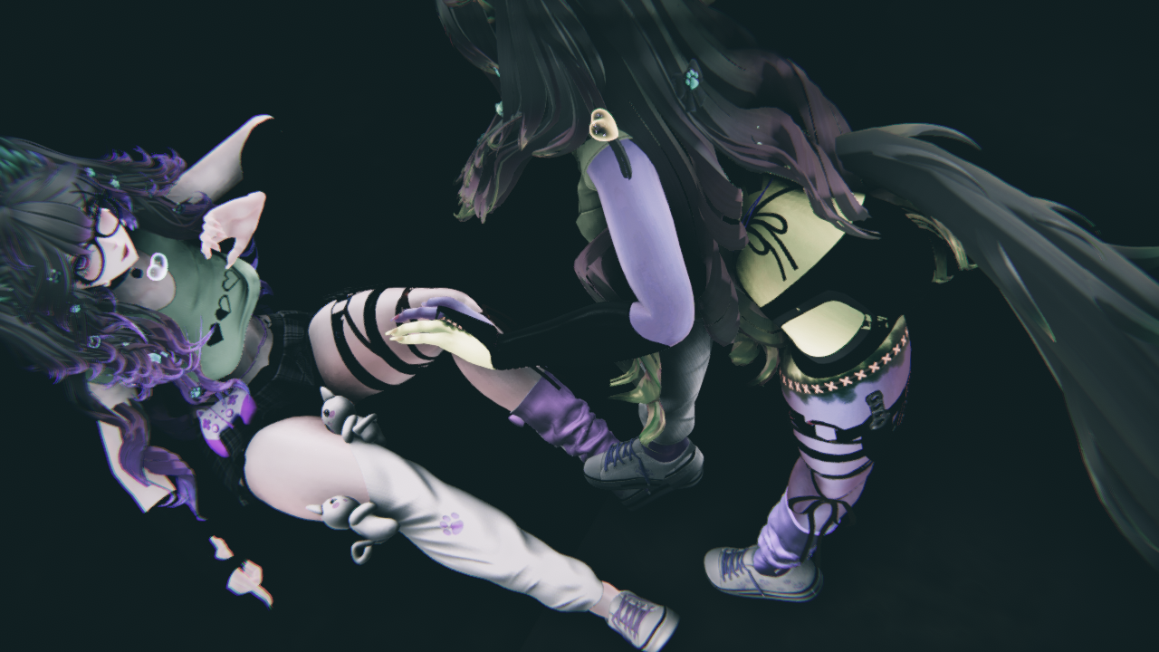 Matt Caps By Awmi,Briistormvr , Gogo Loco By Franada , YingYany-Face and body Textures , Base By VR Zinpia , Hair Texture, Pigtails, Gamer Girl Outfit By Saikuras Haven , Eye's By Jvliette , Kitty Glasses By Teacakezz , Tail By NightVixen , Tattoo's By Geekbutts , Long Hair By Minki , Hair Clips By GM's Box, Inside Bones and plush By Cringy ,Bunny Pasties By Empress Moon , Kitty Socks By Fooly , Shoes By Sebs , Leg Warmer By Pink Puff , Choker, Garter, Hand warmers and shorts By Sadge