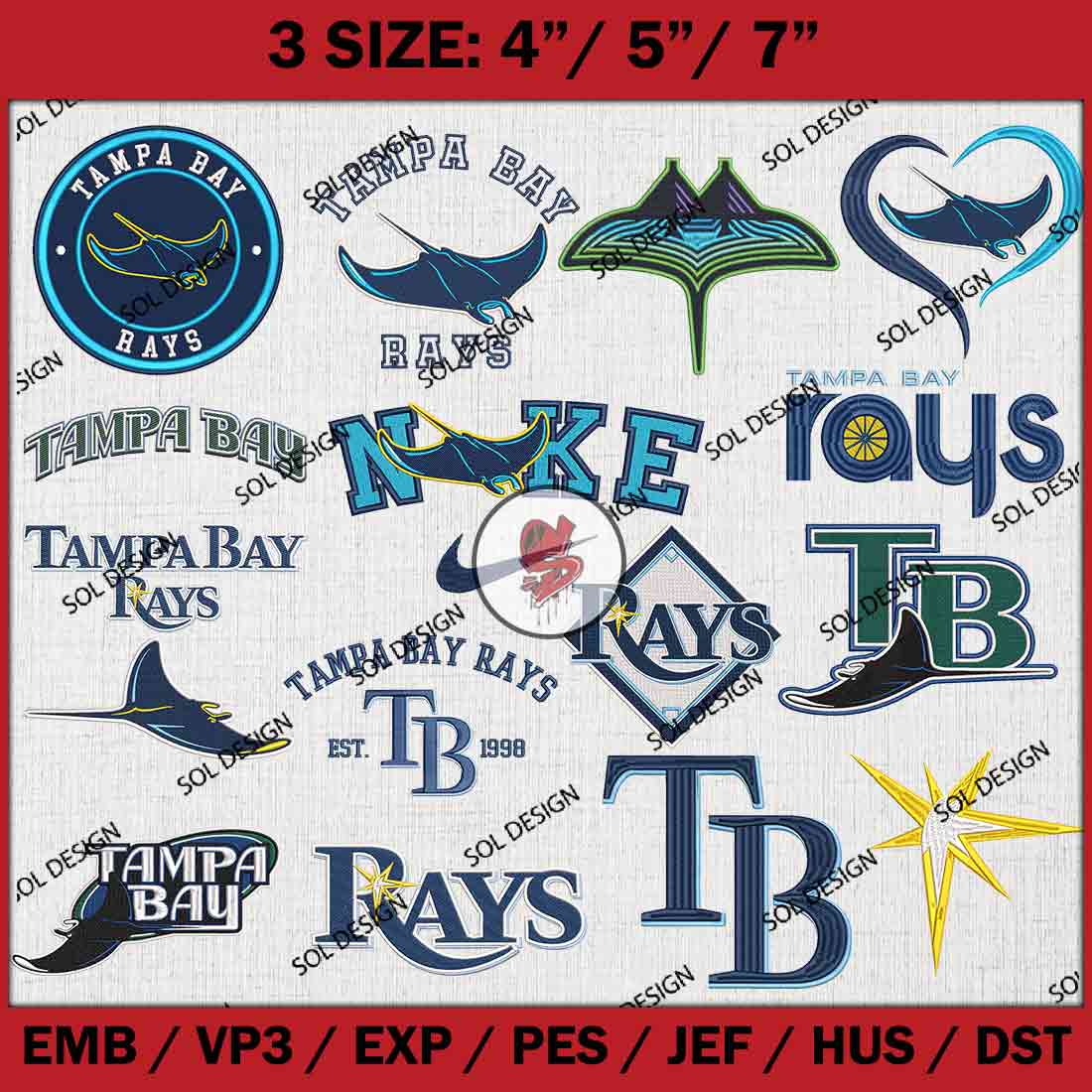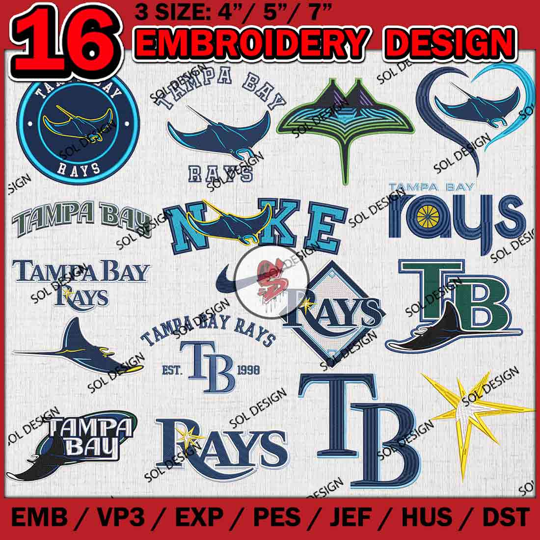 16 Tampa Bay Rays MLB Team Bundle Embroidery Designs, MLB Tampa Bay Rays Embroidery Designs, MLB Rays Machine embroidery Designs Bundle, Baseball Team Bundle, Digital Download