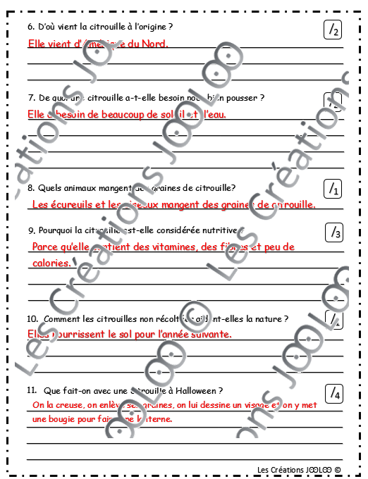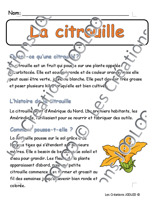 - 1 page sur les parties de la citrouille