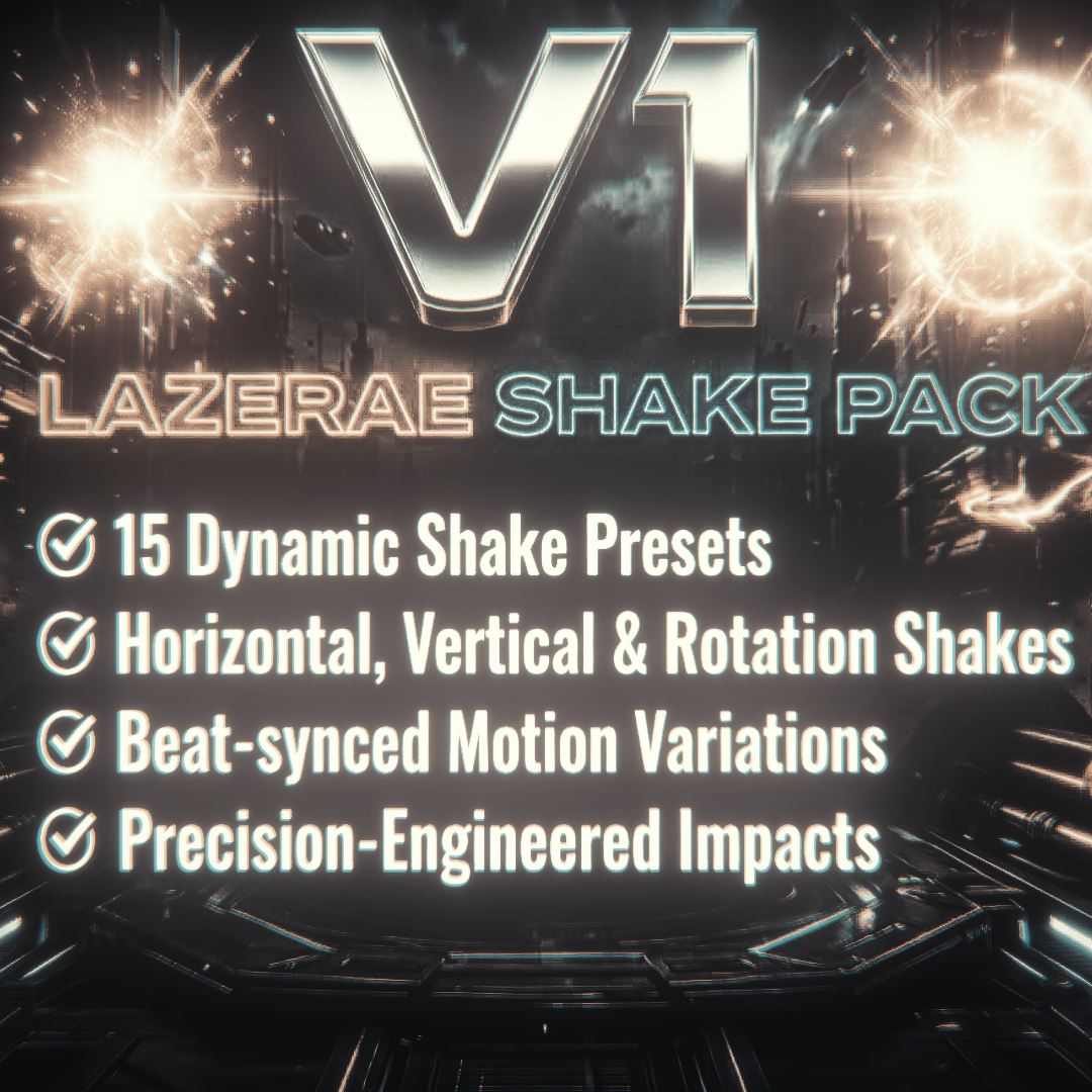The Lazerae Shake Pack brings raw, high-energy shakes that amplify your edits and elevate each transition. Designed for creators who love punchy visuals, this pack includes a mix of sharp micro-shakes, elastic impacts, and rhythmic distortions that make every moment feel alive.