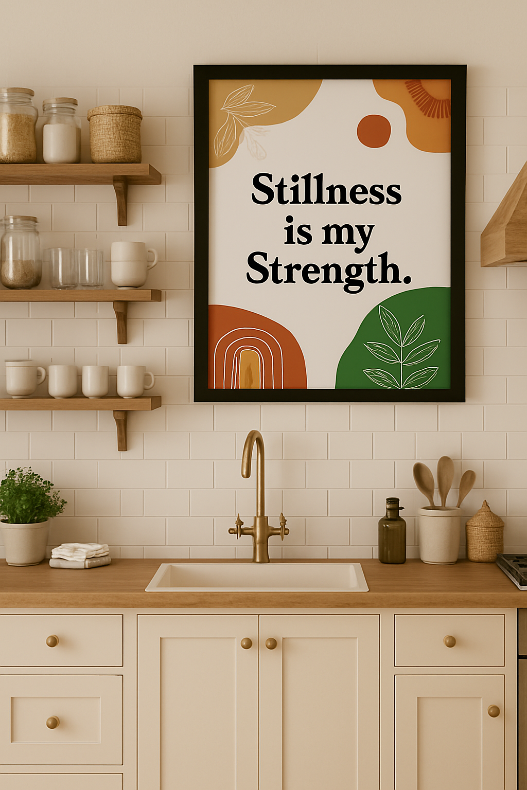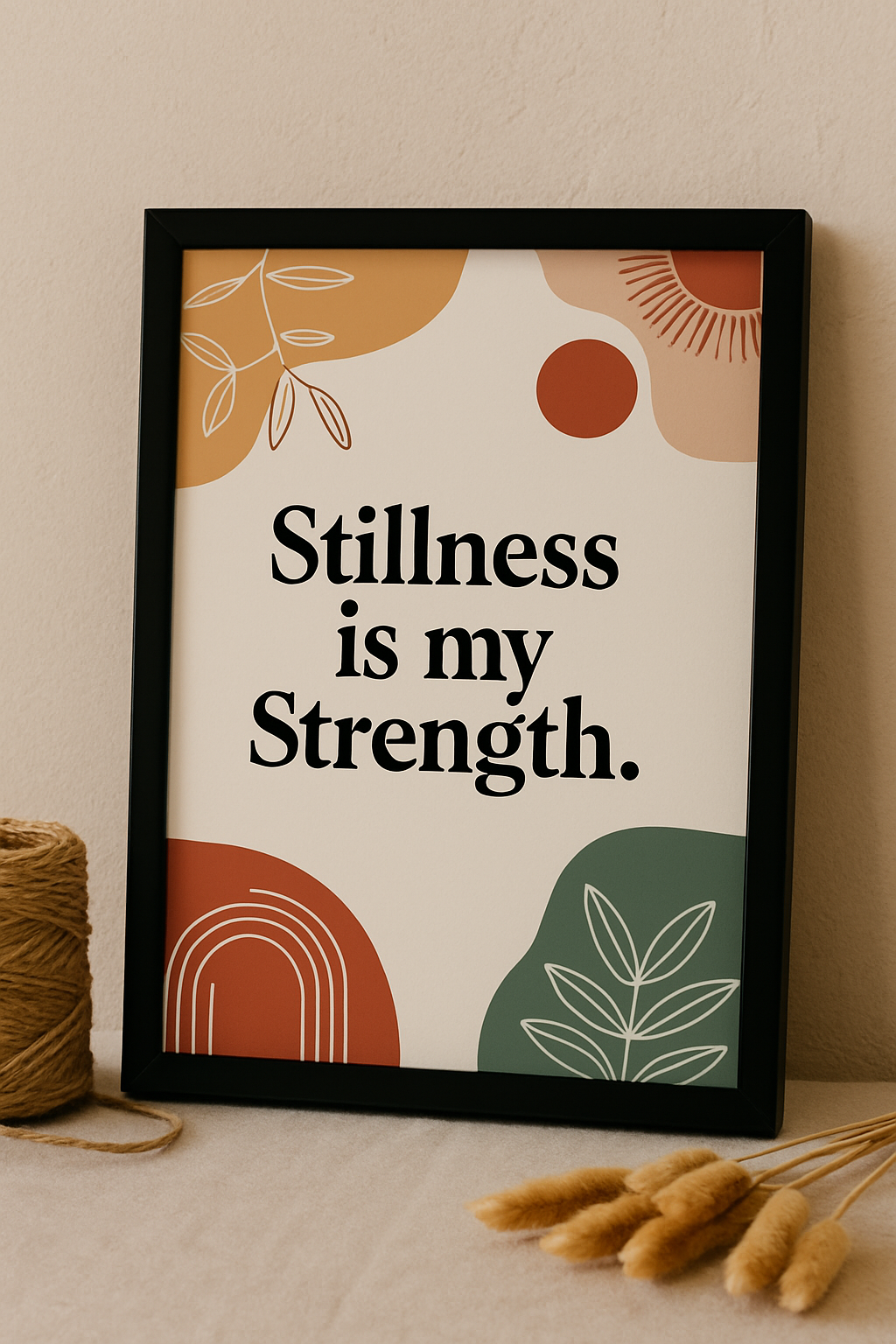 Create a peaceful focal point with this modern boho affirmation print: “Stillness is my Strength.” Neutral clay, terracotta, and sage shapes frame elegant serif typography for a calm, minimalist look that suits bedrooms, home offices, therapy spaces, yoga/meditation corners, and entryways. Download, print, and frame in minutes—no shipping, no waiting.