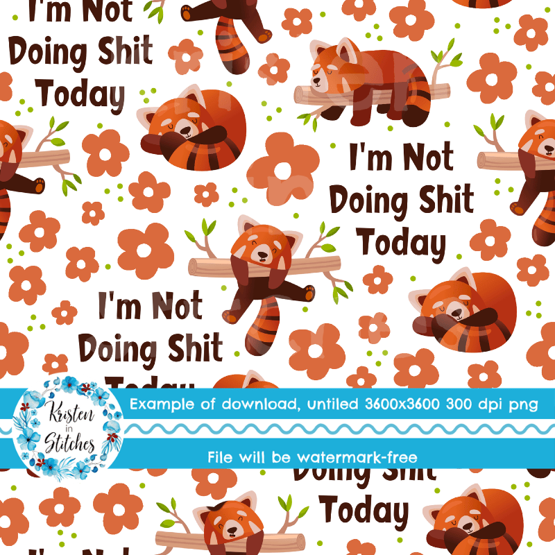 I'm Not Doing Shit Today Seamless Pattern, Swear Words, Sassy Red Pandas
