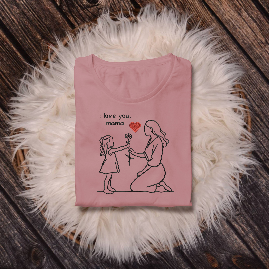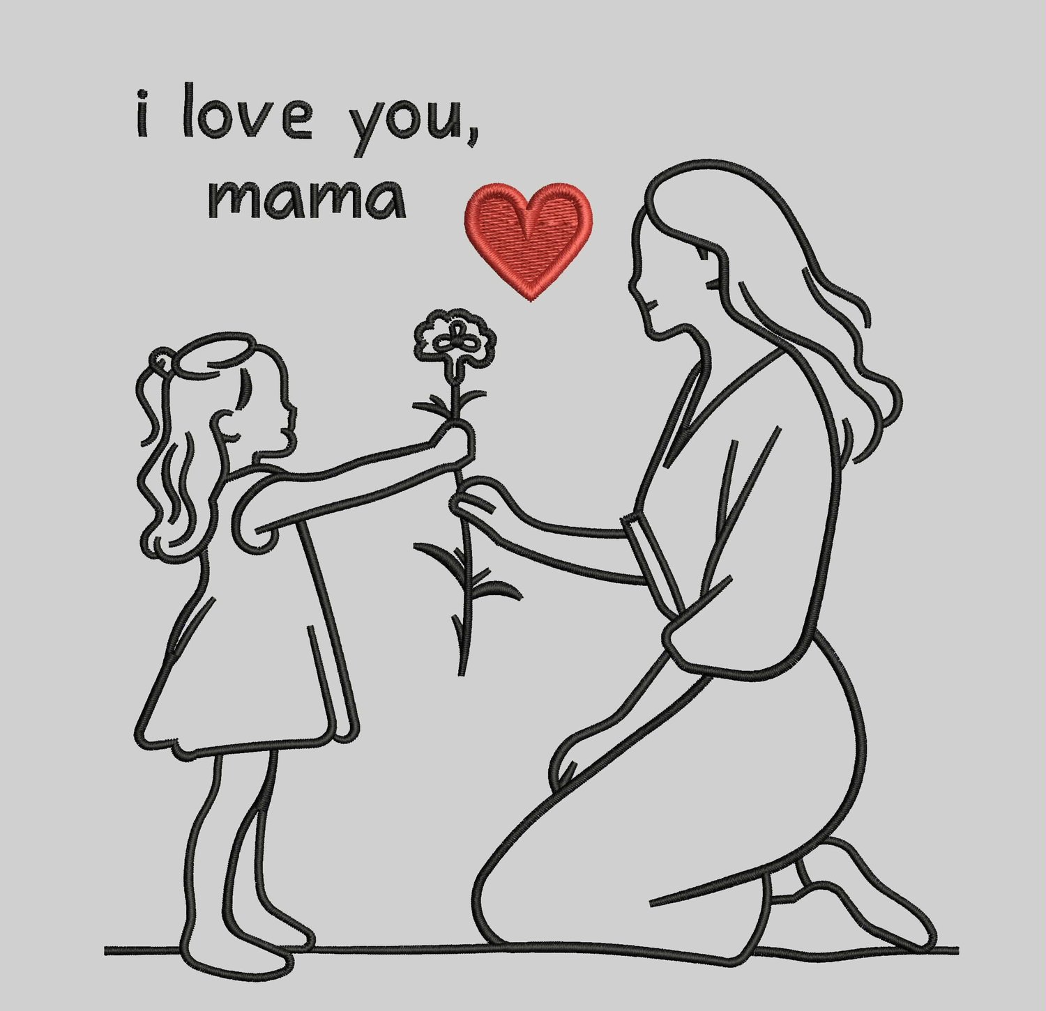 Mother and Daughter Embroidery Design β In Different 3 Sizes - I Love You Mom Pattern β Digital Download for Machine Embroidery