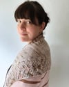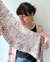 Kodama is worked in one piece, flat. It combines a part in garter stitch, and a part with a lovely lace pattern inspired by the color “Mononoke” by la Bien Aimée.