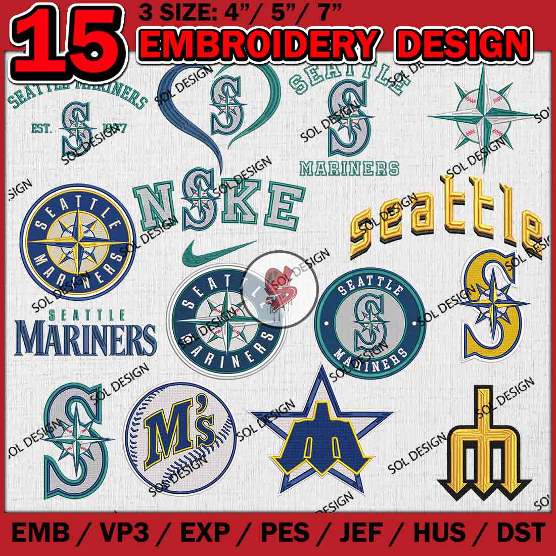 15 Seattle Mariners MLB Team Bundle Embroidery Designs, MLB Seattle Mariners Embroidery Designs, MLB Mariners Machine embroidery Designs Bundle, Baseball Team Bundle, Digital Download