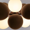 - Configuration: 12 spheres Ø140mm (4 luminous in opal glass + 8 acoustic absorbers in textile fabric – grey or brown)