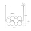 Horizontal suspended acoustic lamp "DRAC" – 4 luminous spheres and 8 absorbing spheres