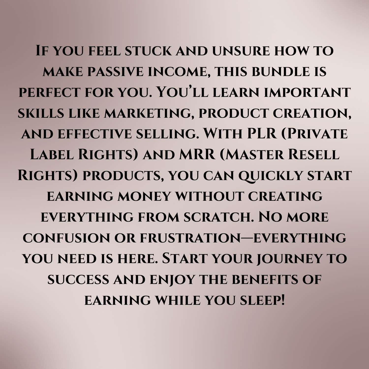 With MRR products, you can earn passive income effortlessly. Resell high-quality, ready-made products and keep all the profits—saving you time, effort, and resources that would go into product development. Plus, you can customize and brand these products to fit your needs, enhancing your personal or business brand.
