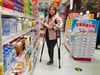 Grace, a sak girl, went shopping for shoes at the mall on crutches.