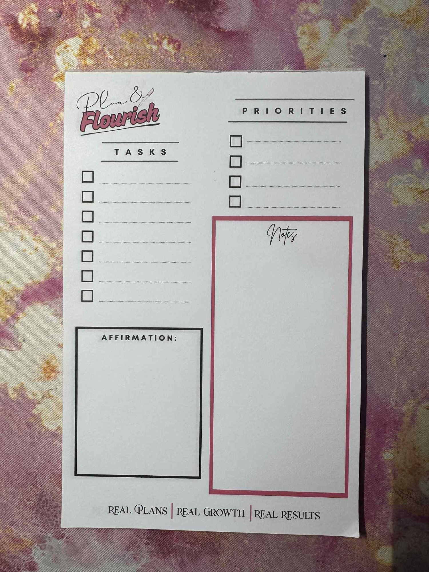 Perfect for busy women balancing life, work, and dreams, this 5x7 pad keeps you grounded and goal-driven — so you can plan your day and flourish your way.