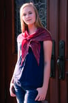 Triangulate is a one-skein, reversible garter shawl composed of two triangles with a chevron border, and is designed to show off the colors of a variegated skein, using simple stitches and beautiful yarn. The shawl begins with a provisional cast on at the center, and is knit outwards in two triangular halves using short rows. The wide edging is knit continuously from the live stitches with no picking up stitches necessary, and may be made narrower or wider to accommodate varying yardages. The unusual construction results in a deceptively simple shape that is uncomplicated yet interesting to knit, and versatile to wear.