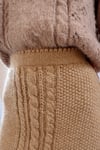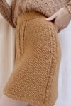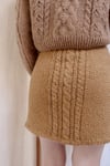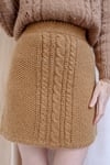 The Sage Seed Skirt is an A-line mini skirt with seed stitch and cables.