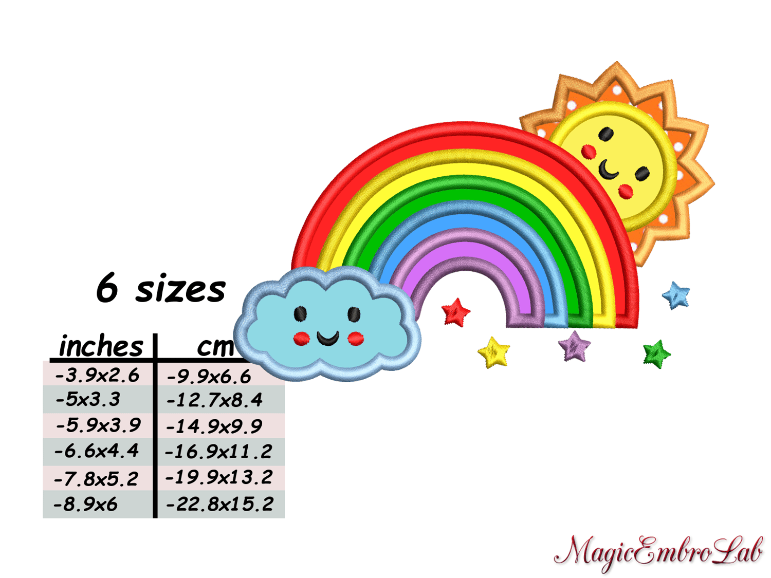 Rainbow APPLIQUE, 6 sizes, Instant Download