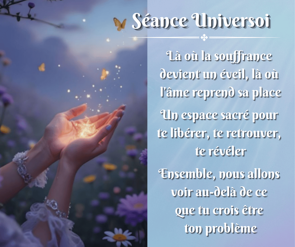 Cette séance individuelle est un espace sacré pour te libérer des charges émotionnelles, retrouver ton centre et ouvrir ton cœur à la guérison.