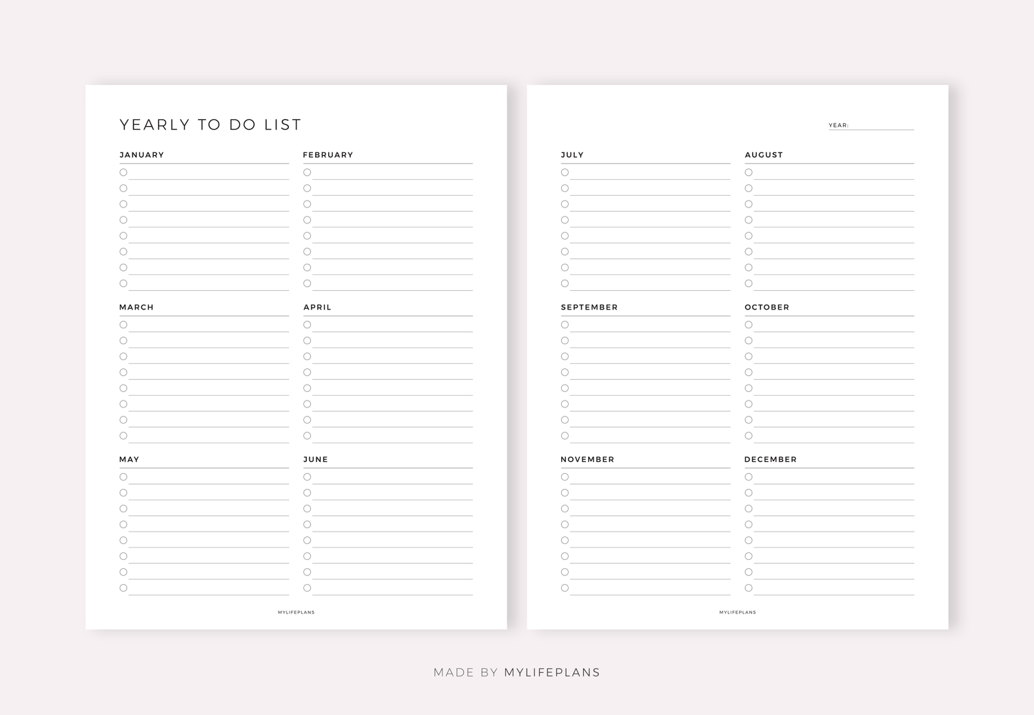 Yearly To Do List on Two Pages, Digital Planner for Goodnotes, Notability, Ipad